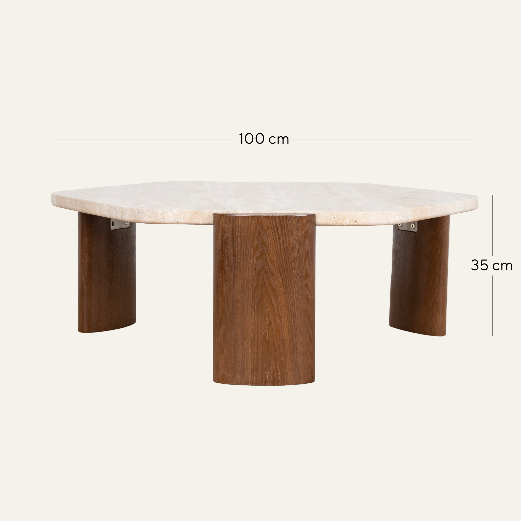 The Larisa 100cm Travertine Coffee Table - Walnut exudes a sense of modern sophistication while embracing organic beauty. Designed as a statement centerpiece, this coffee table features a smooth, travertine top with delicate natural veining that makes every piece unique.