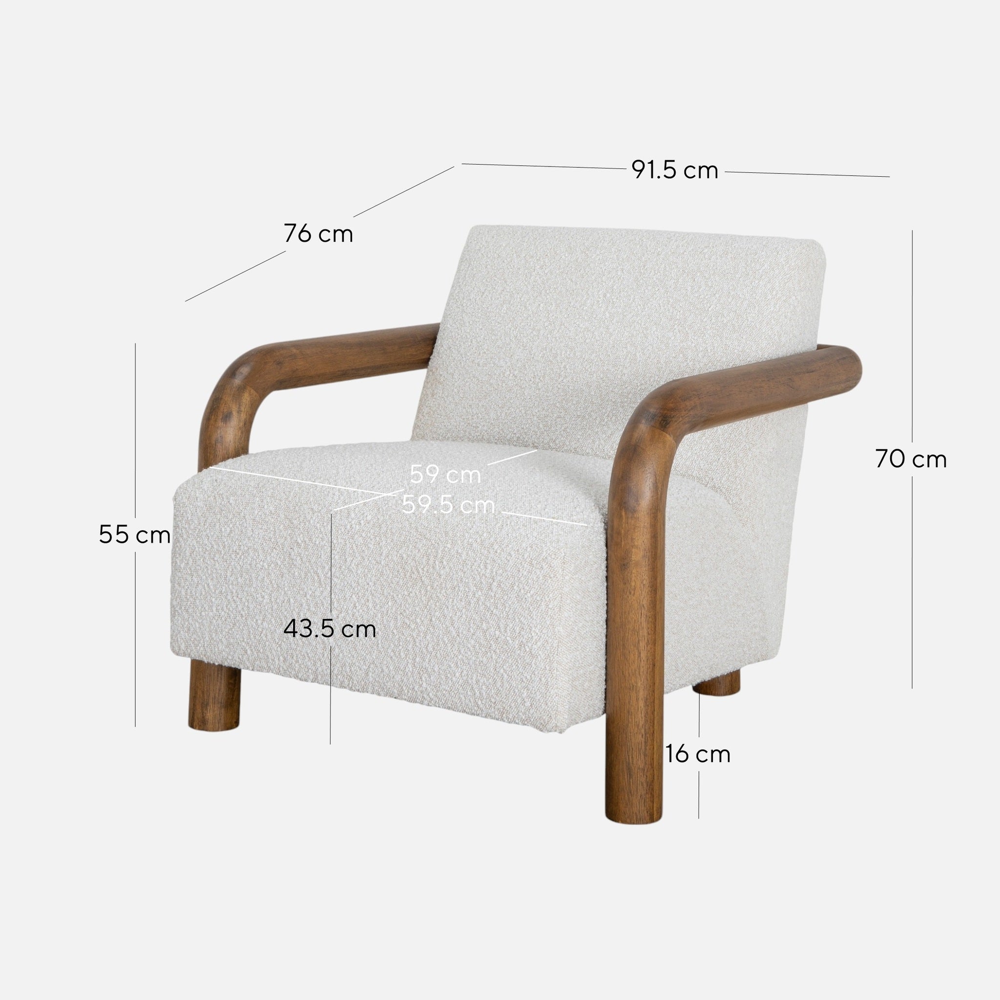 Lazycave Walnut Armchair - Off White Boucle
