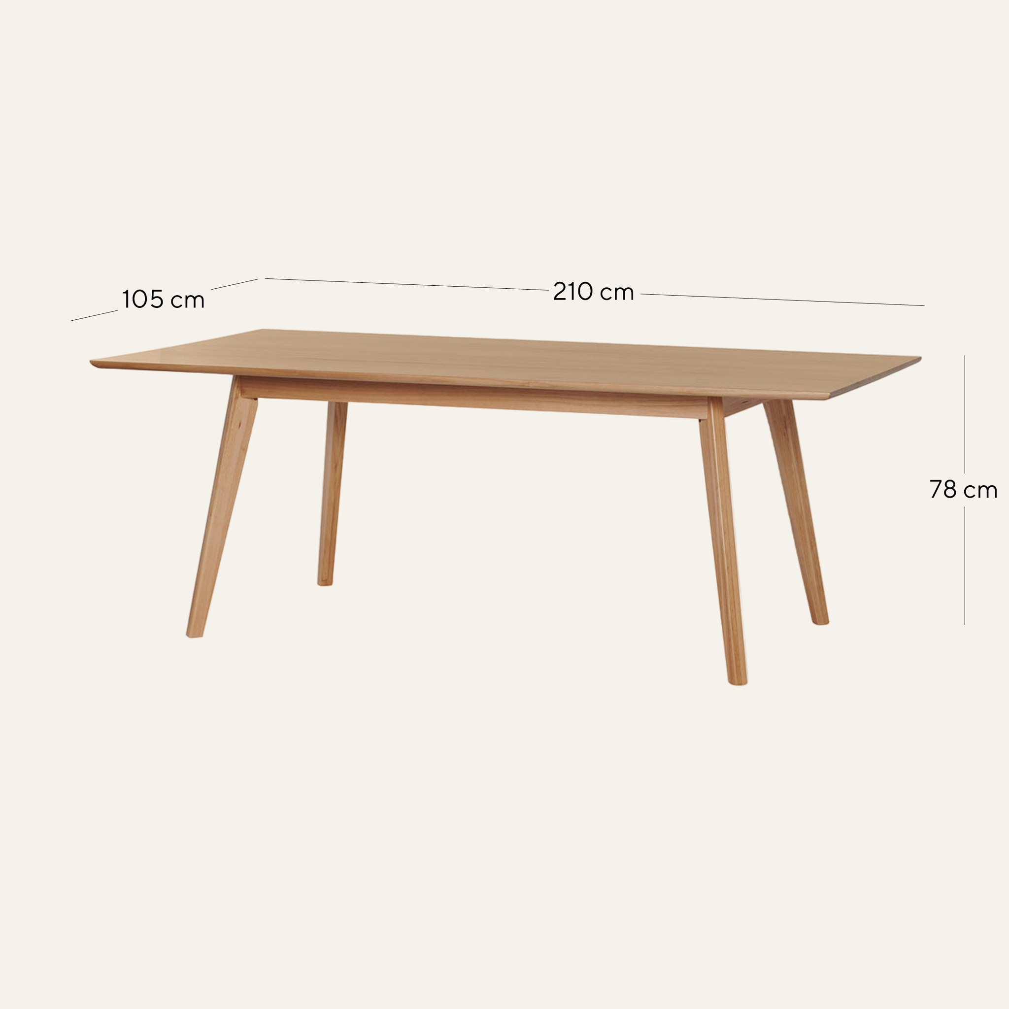 Hoist the ambiance of your dining space with the Leanna 2.1m Dining Table. Boasting the natural charm of messmate wood, it will set the stage for memorable meals.