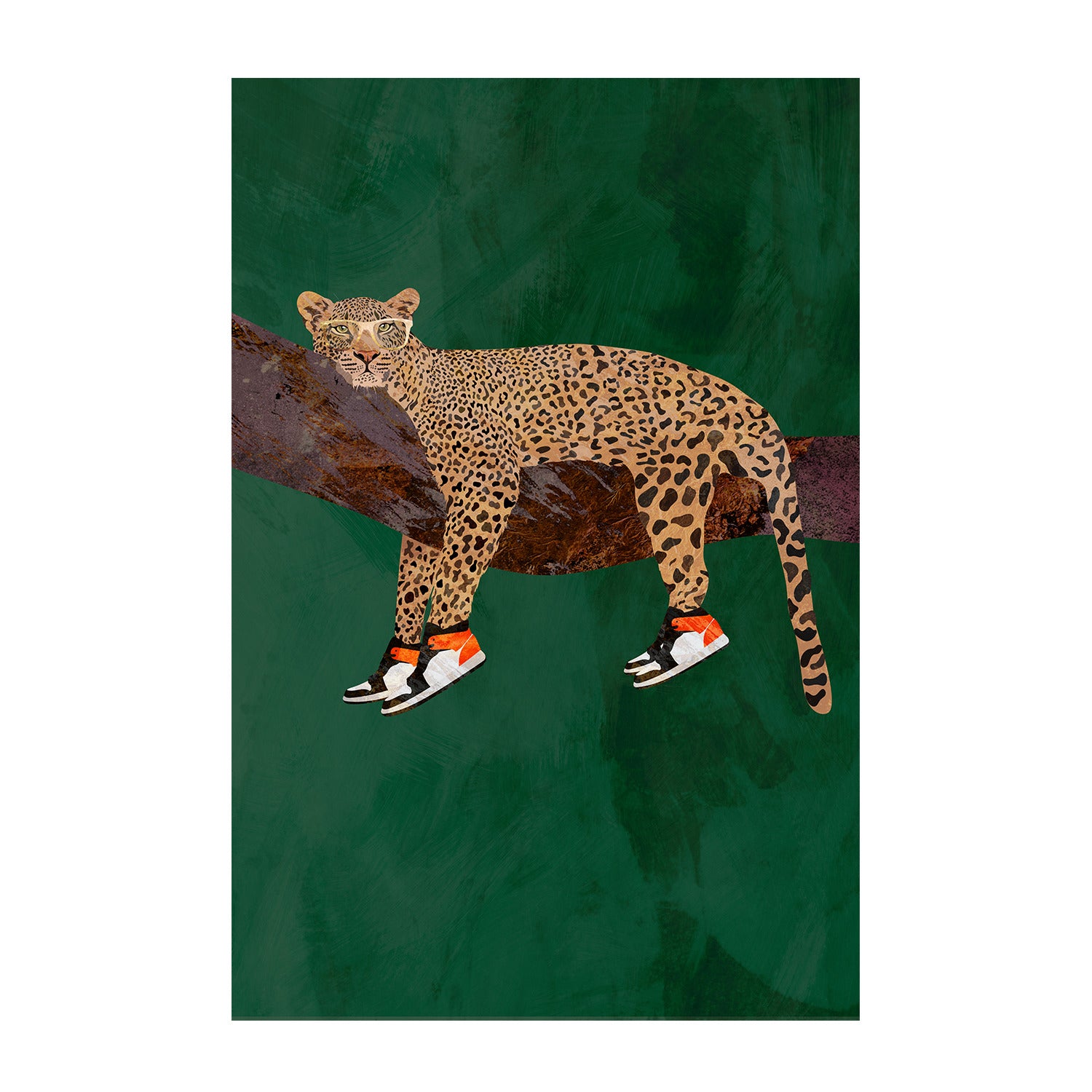 Bring some personality and fun into your space with Leopard Chill by Sarah Manovski. This stylish leopard print features a laid-back leopard lounging on a tree branch, rocking trendy sneakers. Perfect for any home or office, this playful piece adds a touch of uniqueness to your interior.
