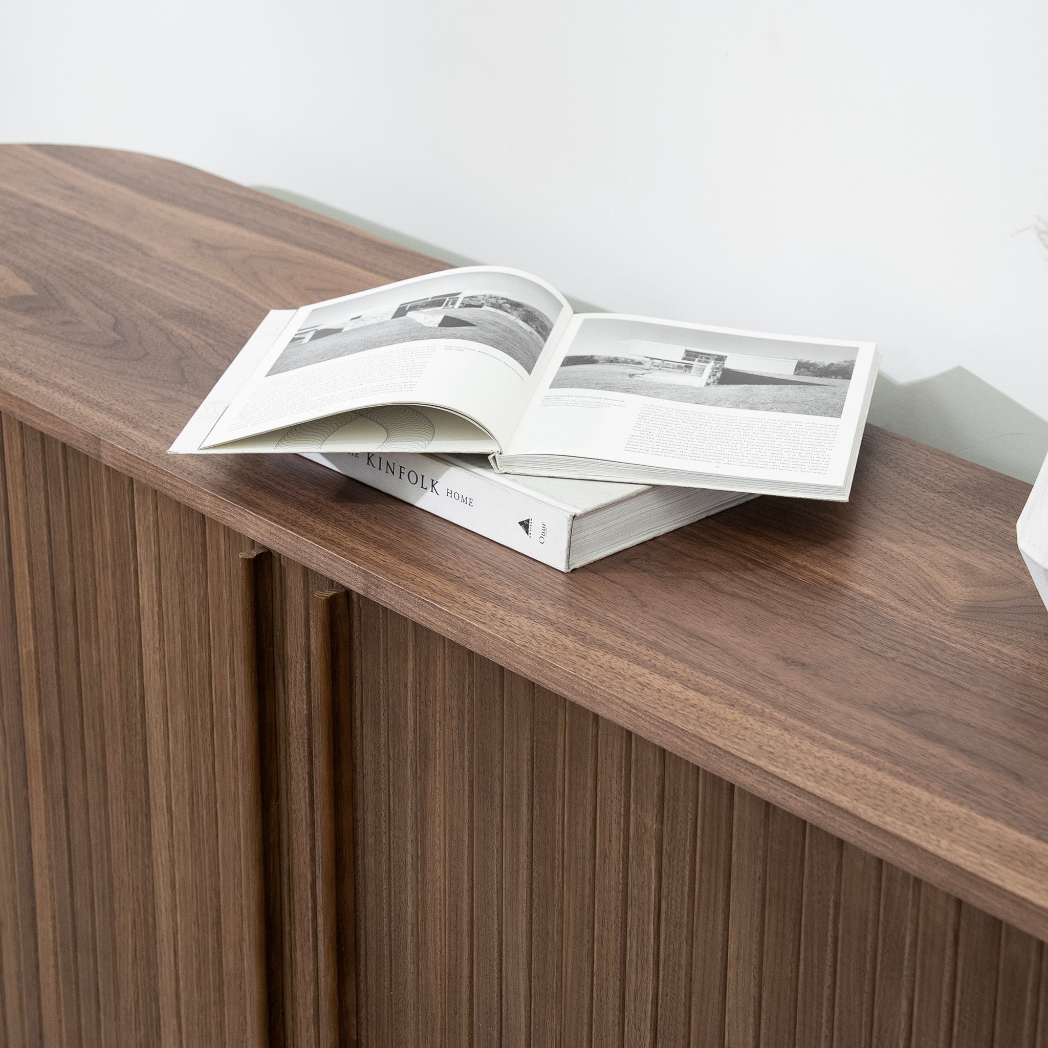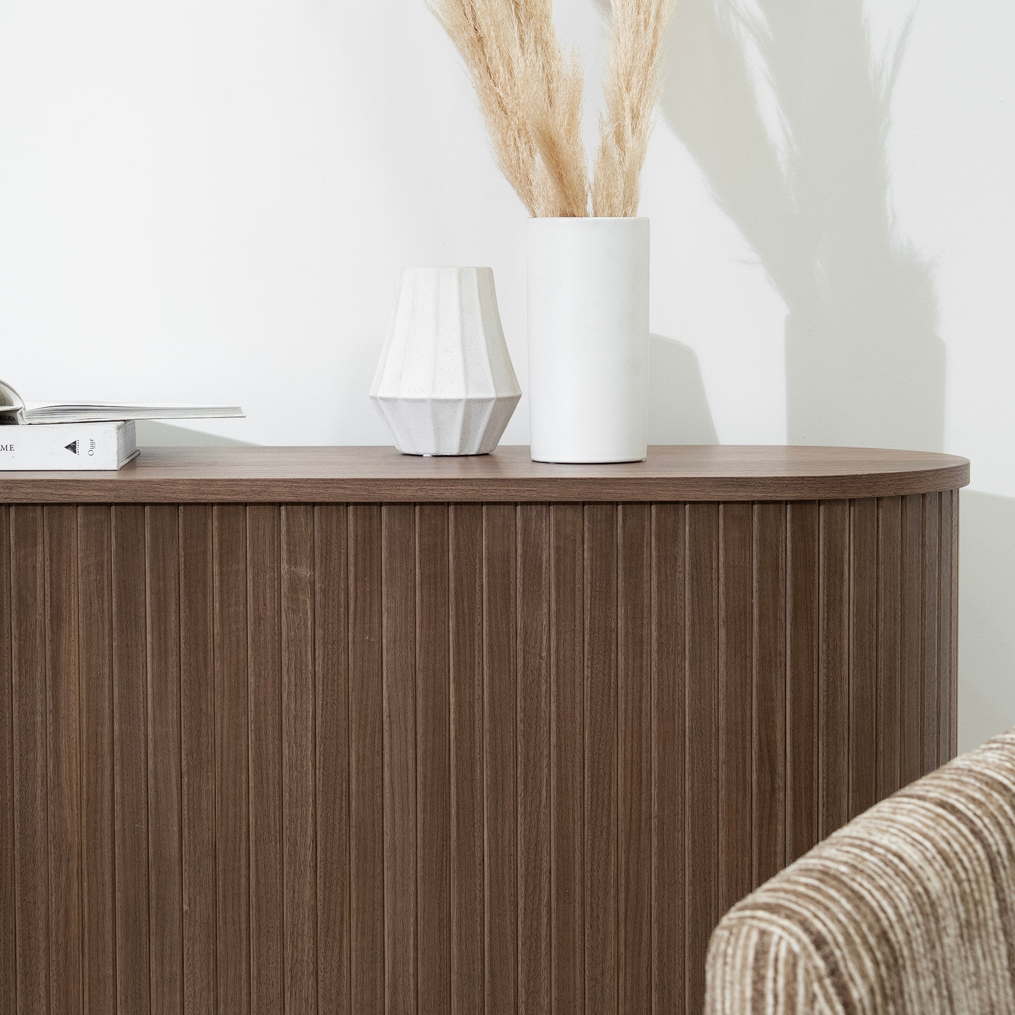 Vertical fluted panels and a rich walnut finish give the Linea 1.7m Wooden Buffet Unit in Walnut warmth and texture. Its elongated, softly curved form feels balanced and refined, offering generous storage behind a clean, seamless façade.