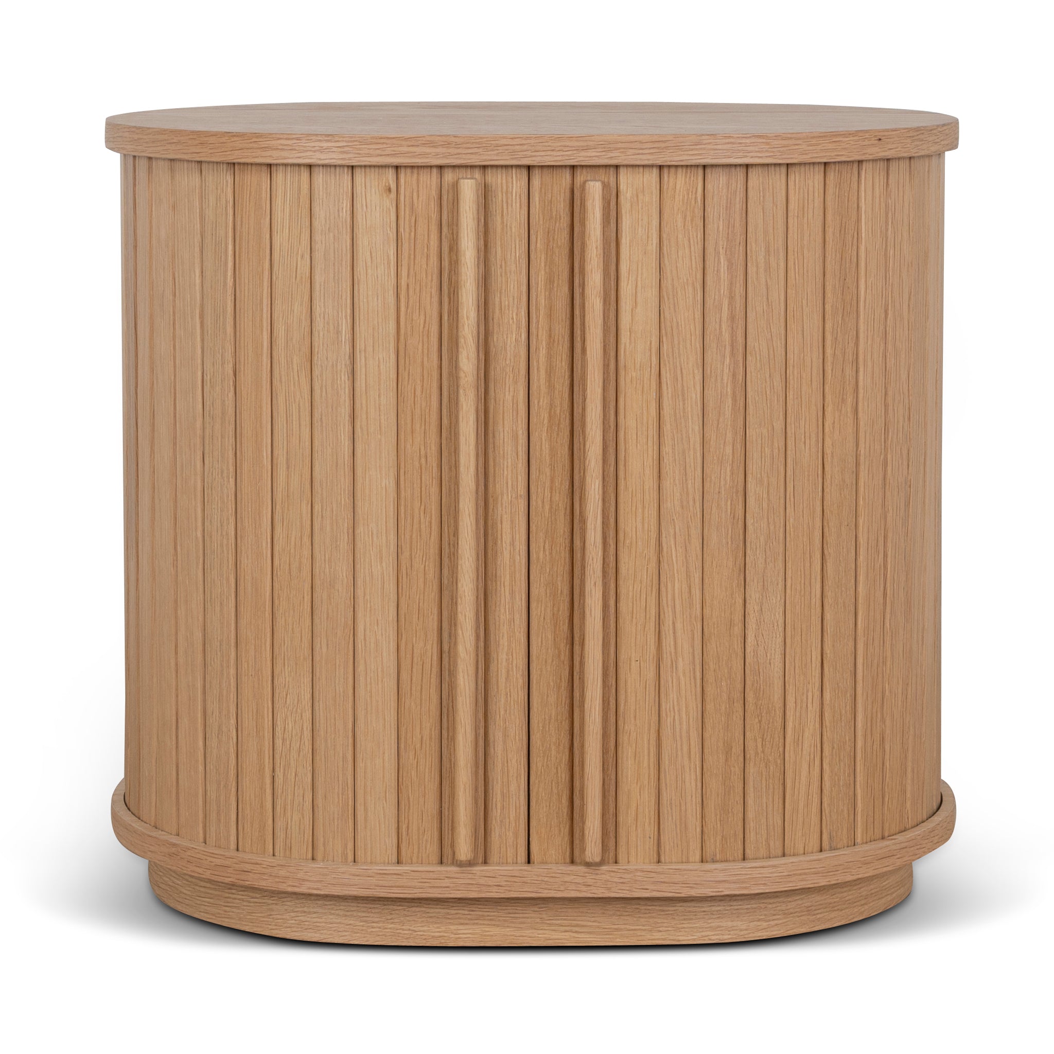 - Vertical fluted slat detailing creates subtle texture