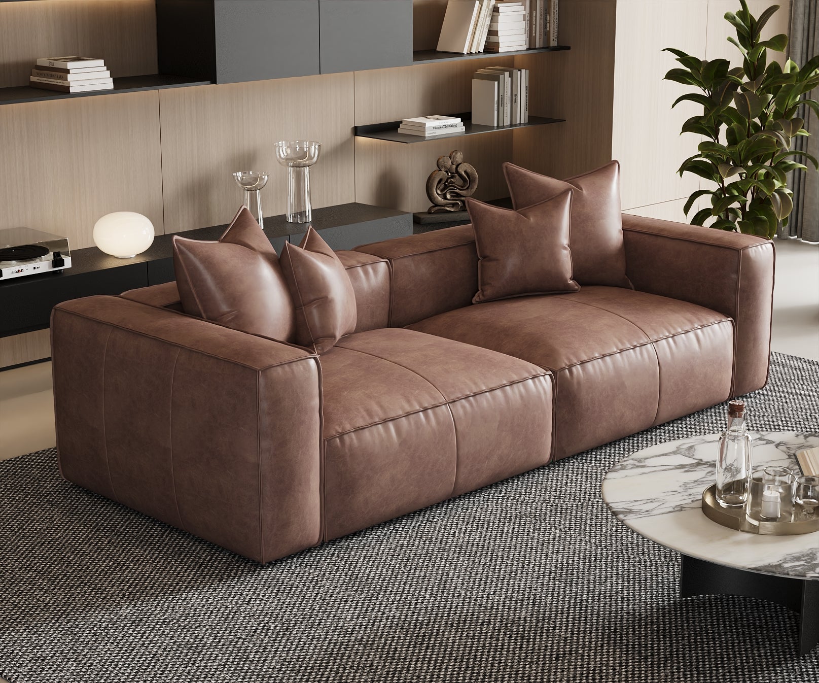 - The seat firmness of this leather sofa is soft. As a result, the leather will naturally stretch and wrinkle over time, which may occur sooner compared to firmer seating options.