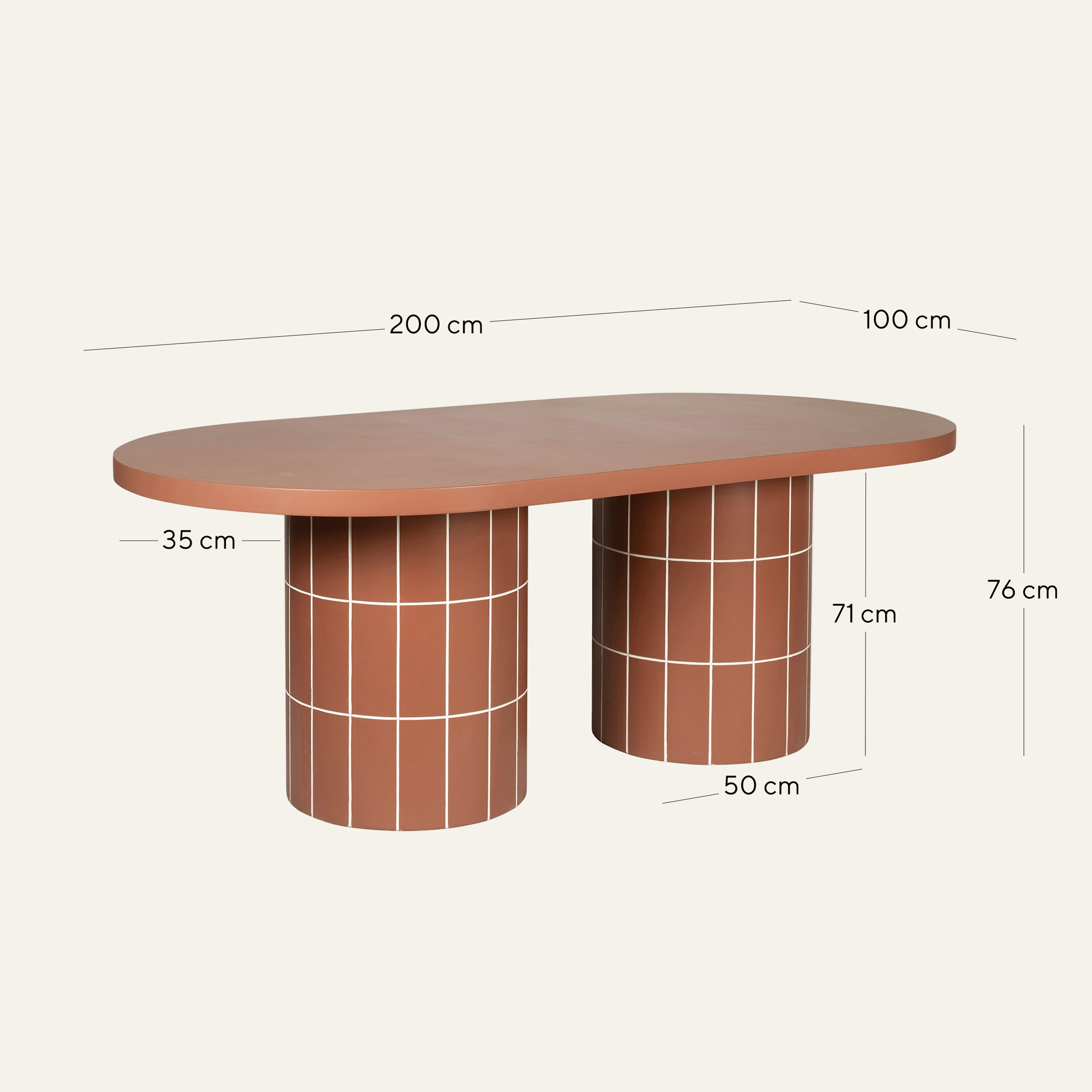 Lutetia 2m Concrete Oval Dining Table- - Terracotta