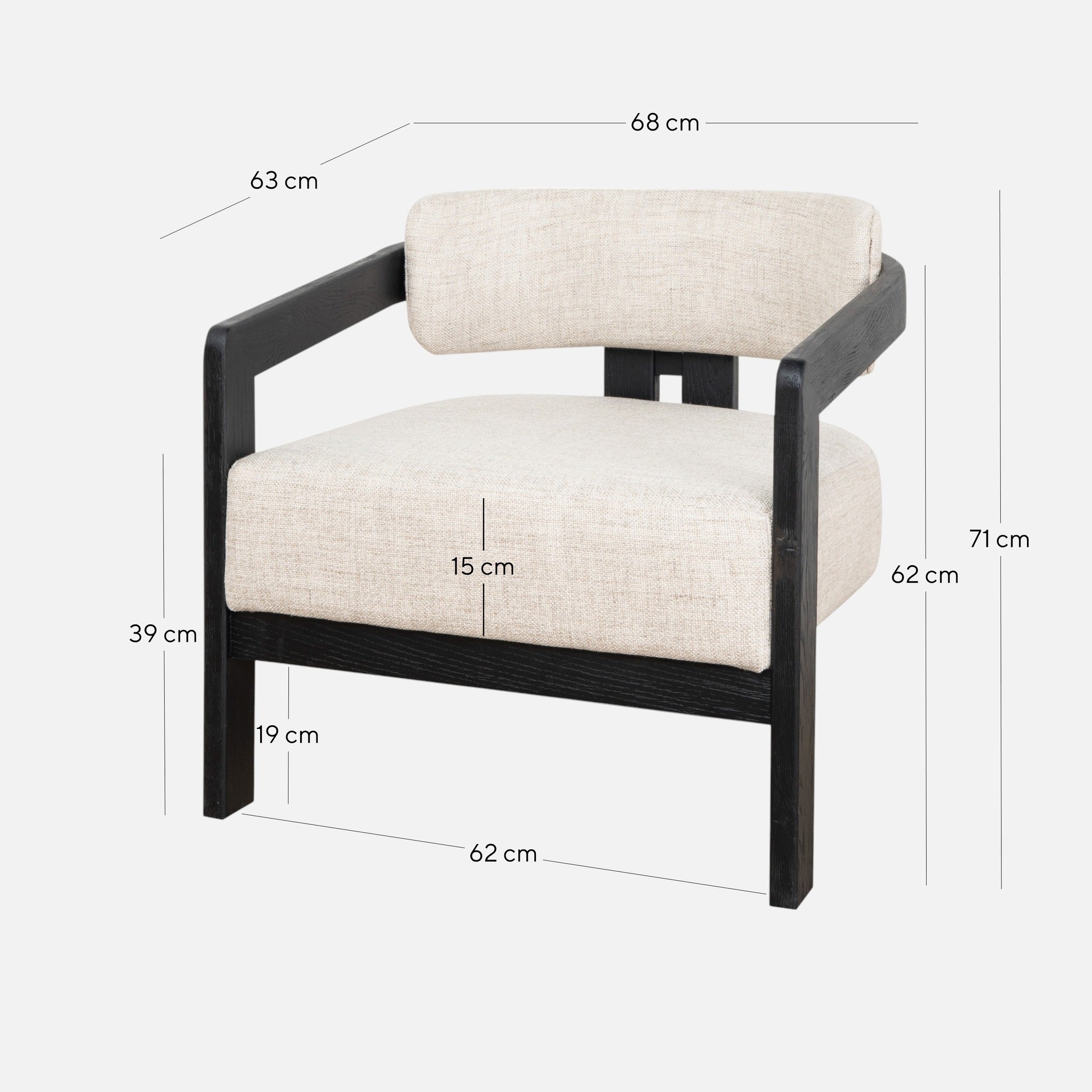 The Malene Black Armchair in linen exudes sophistication and creates a welcoming atmosphere in any space. This versatile armchair can be placed in the living room, bedroom, or study, where it becomes the focal point with its refined beauty and inviting charm. Its rich, warm walnut color adds a touch of elegance to any room.