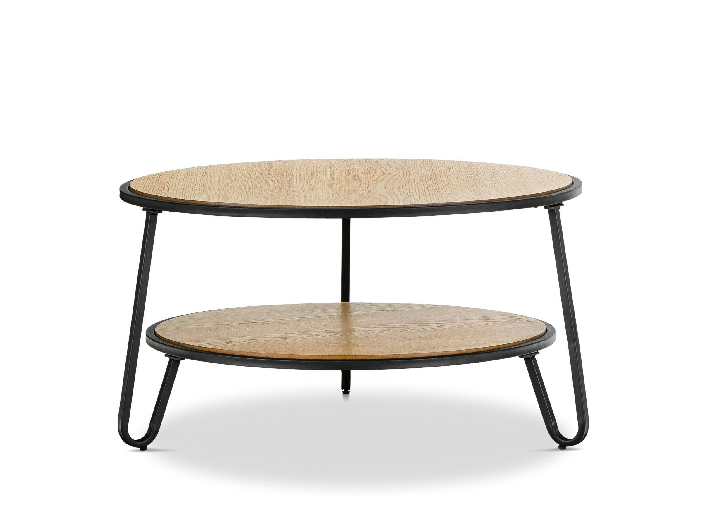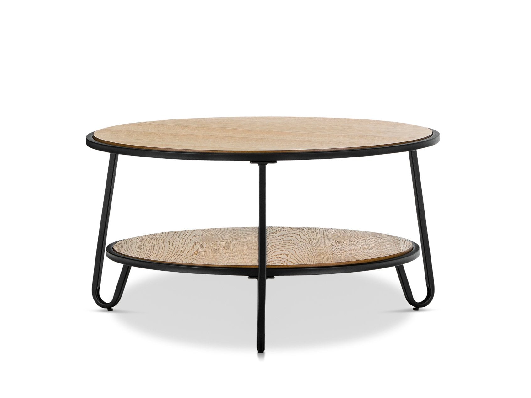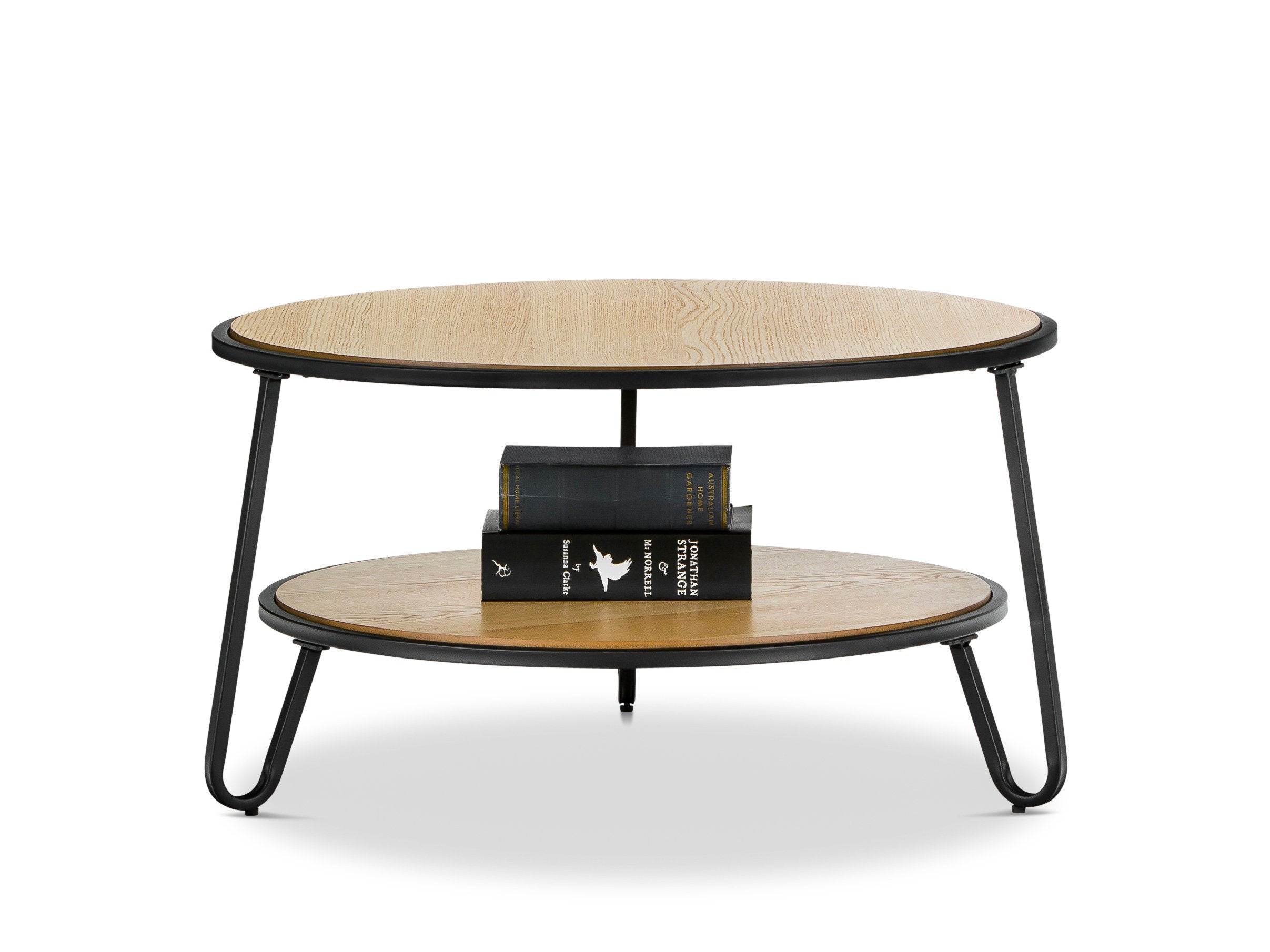 Marcelle 74cm Round Coffee Table - Light Oak Top Black Frame