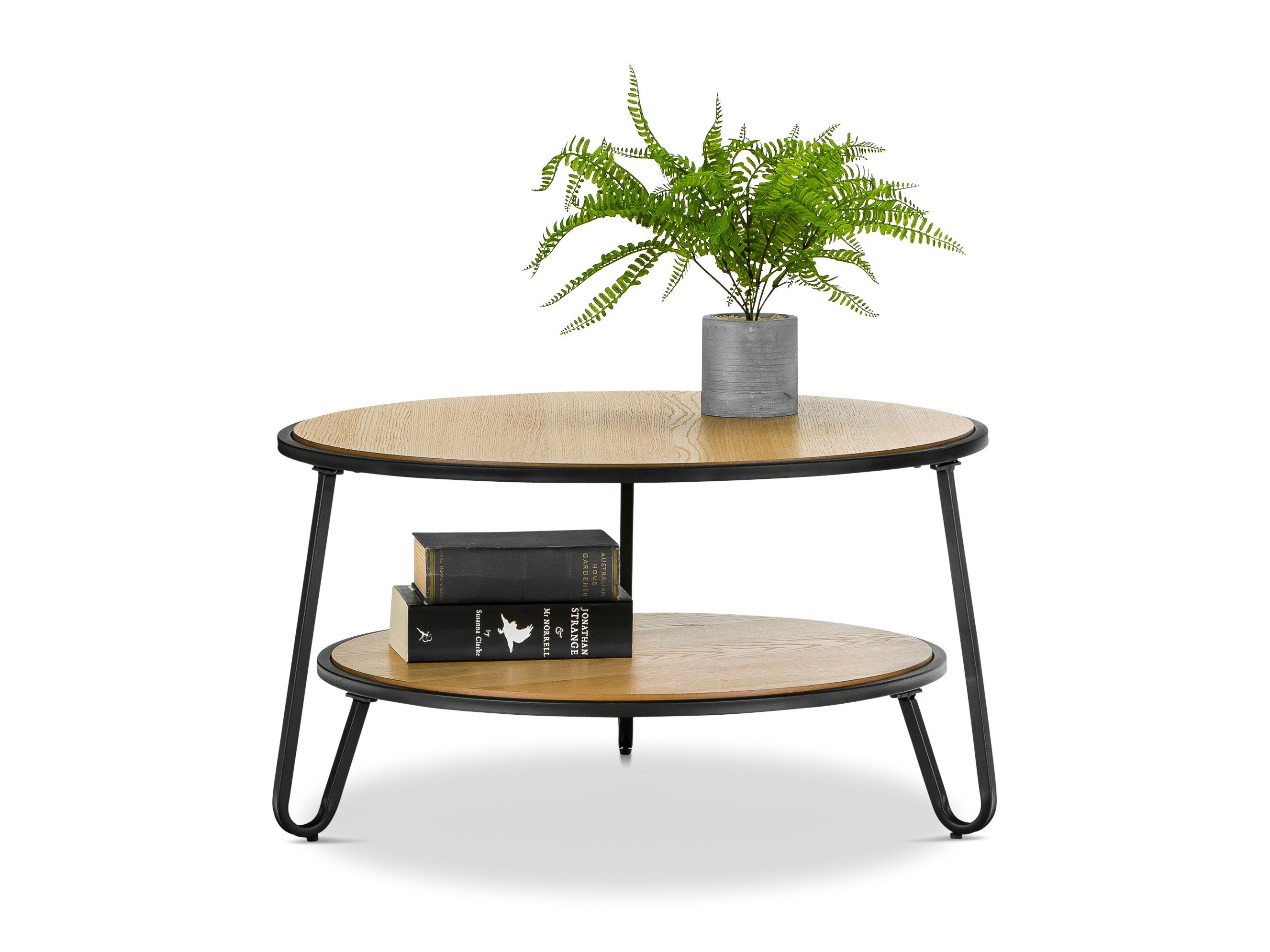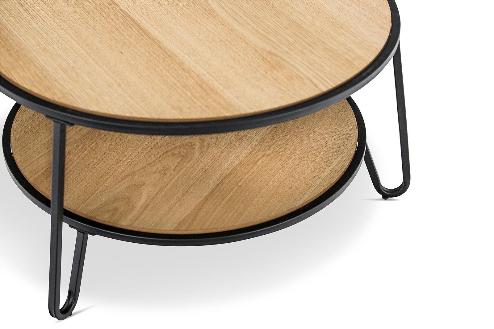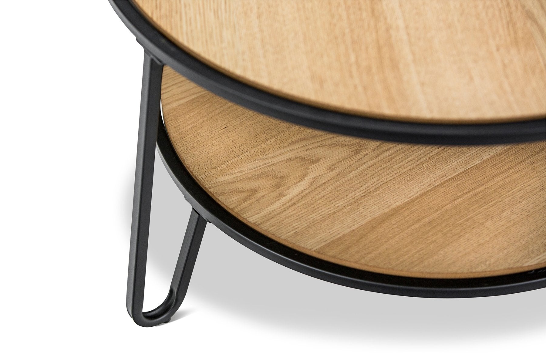 Marcelle 74cm Round Coffee Table - Light Oak Top Black Frame