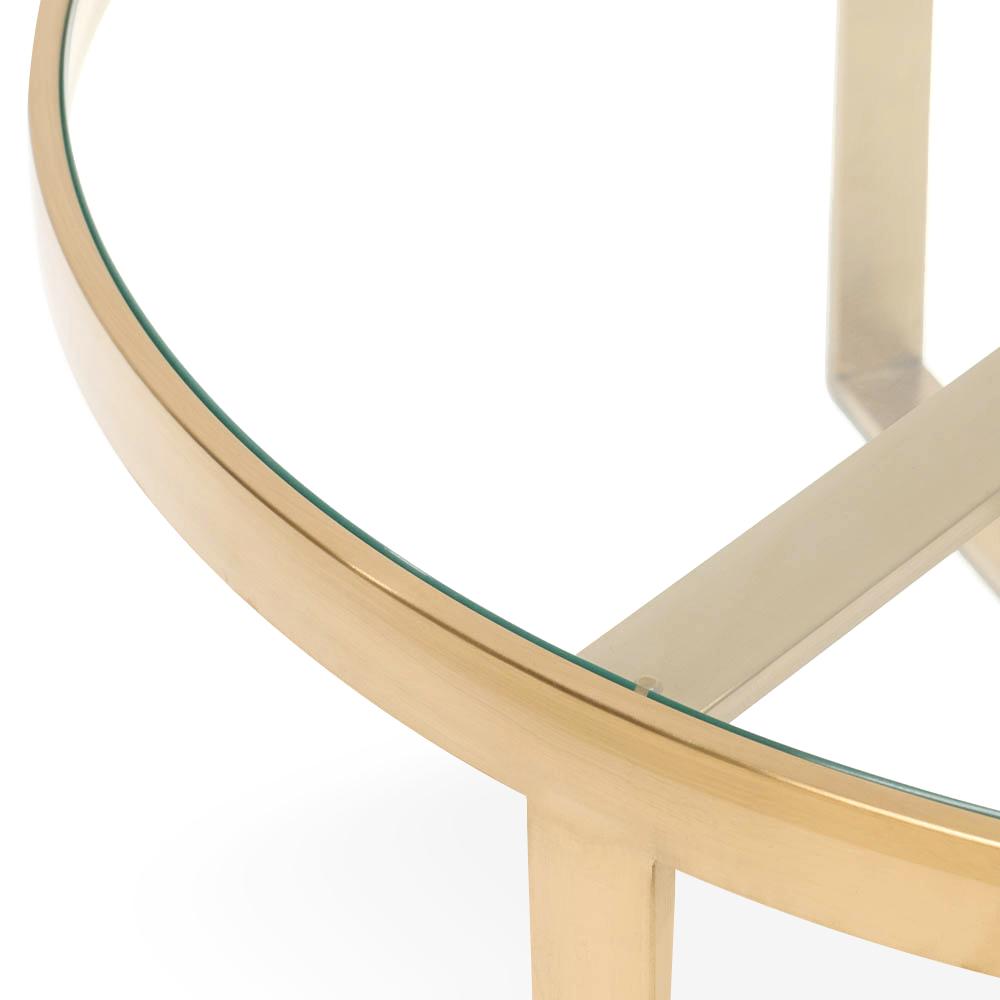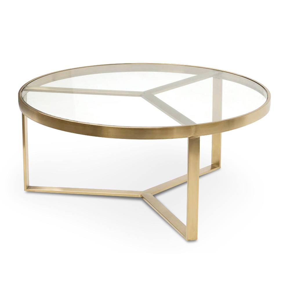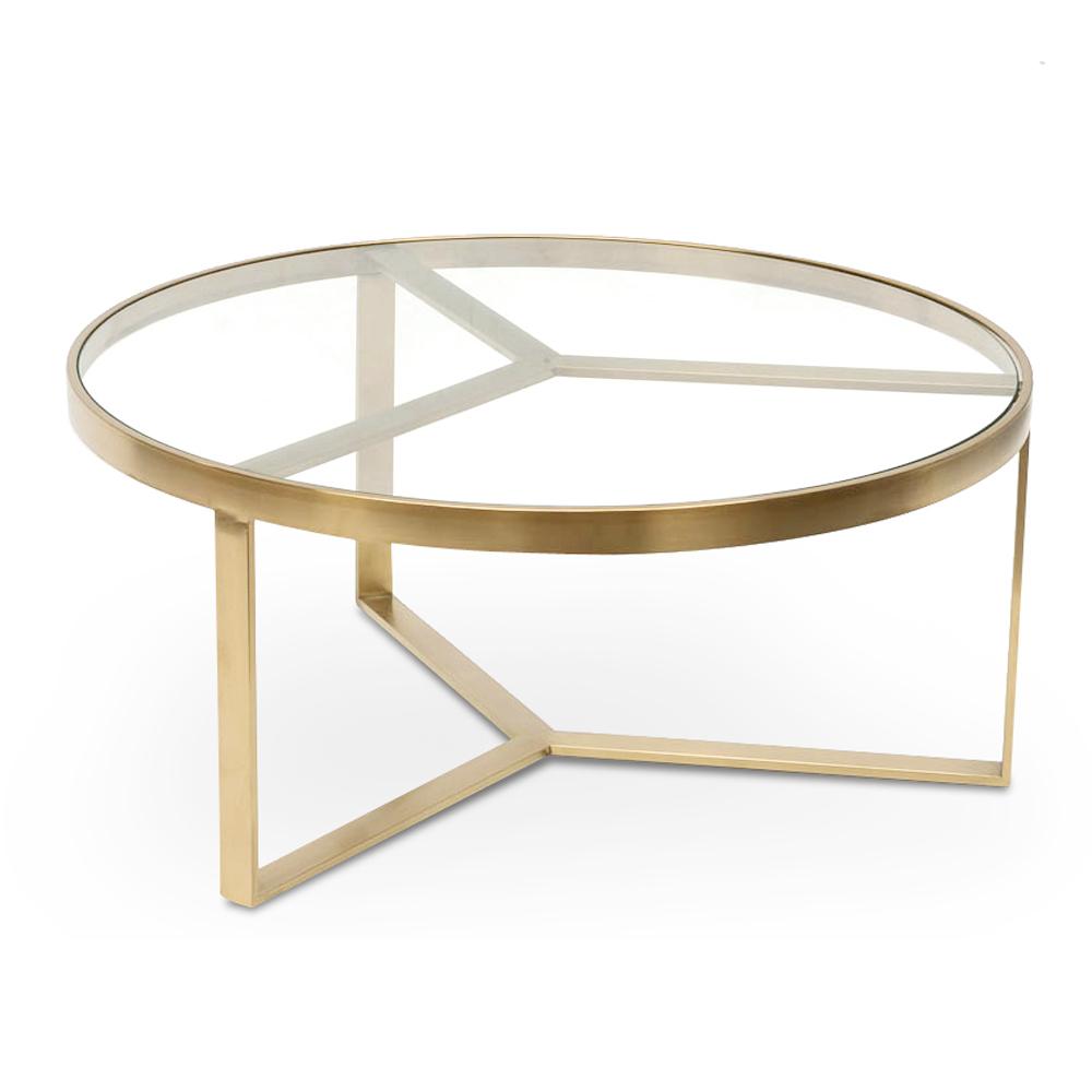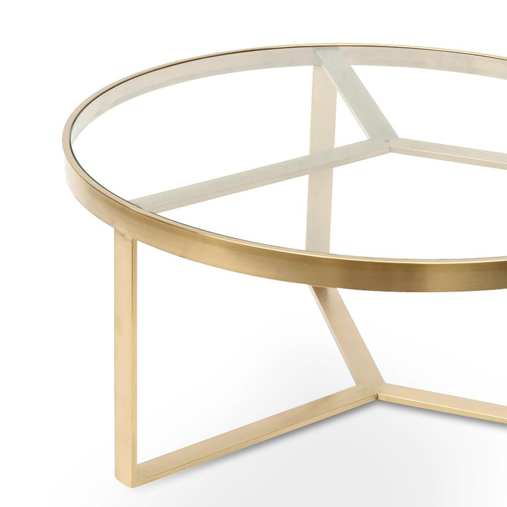 Marcelo 90cm Round Glass Coffee Table - Brushed Gold Base