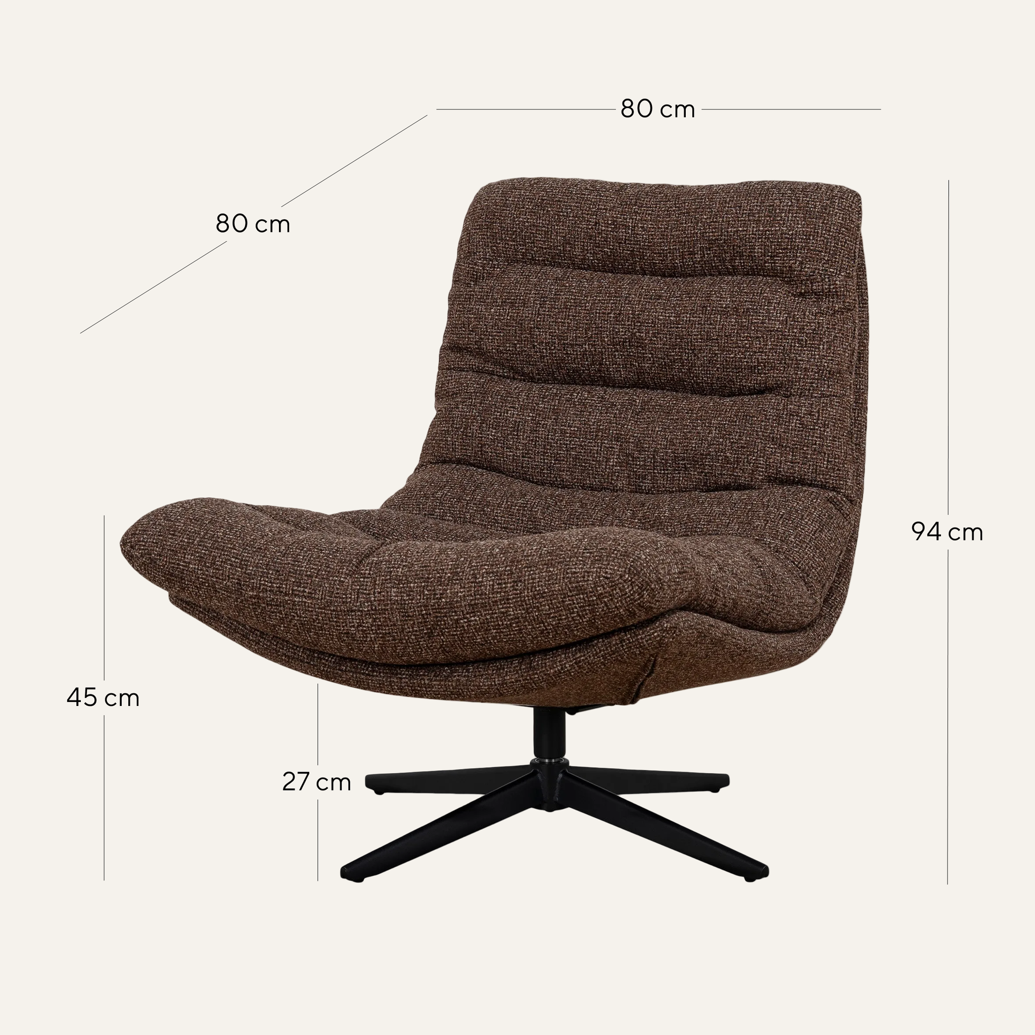 Overall: 80cm (W) x 80cm (D) x 94cm (H) Seat: 79cm (W) x 62cm (D) x 45cm (H) Leg Height: 27cm