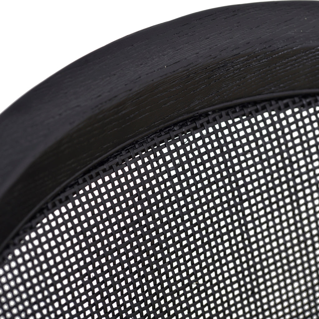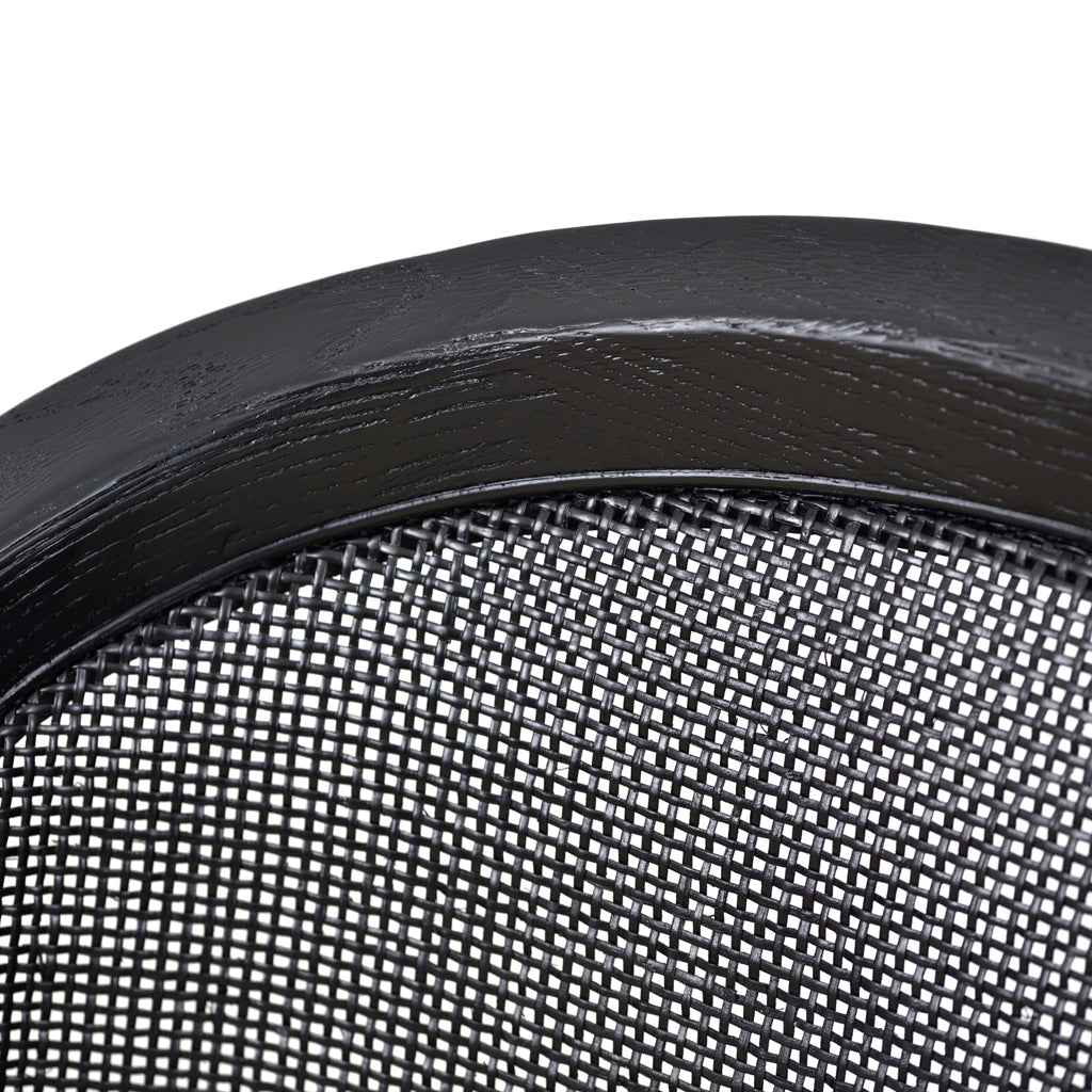 - Curved cane back of mesh canvas