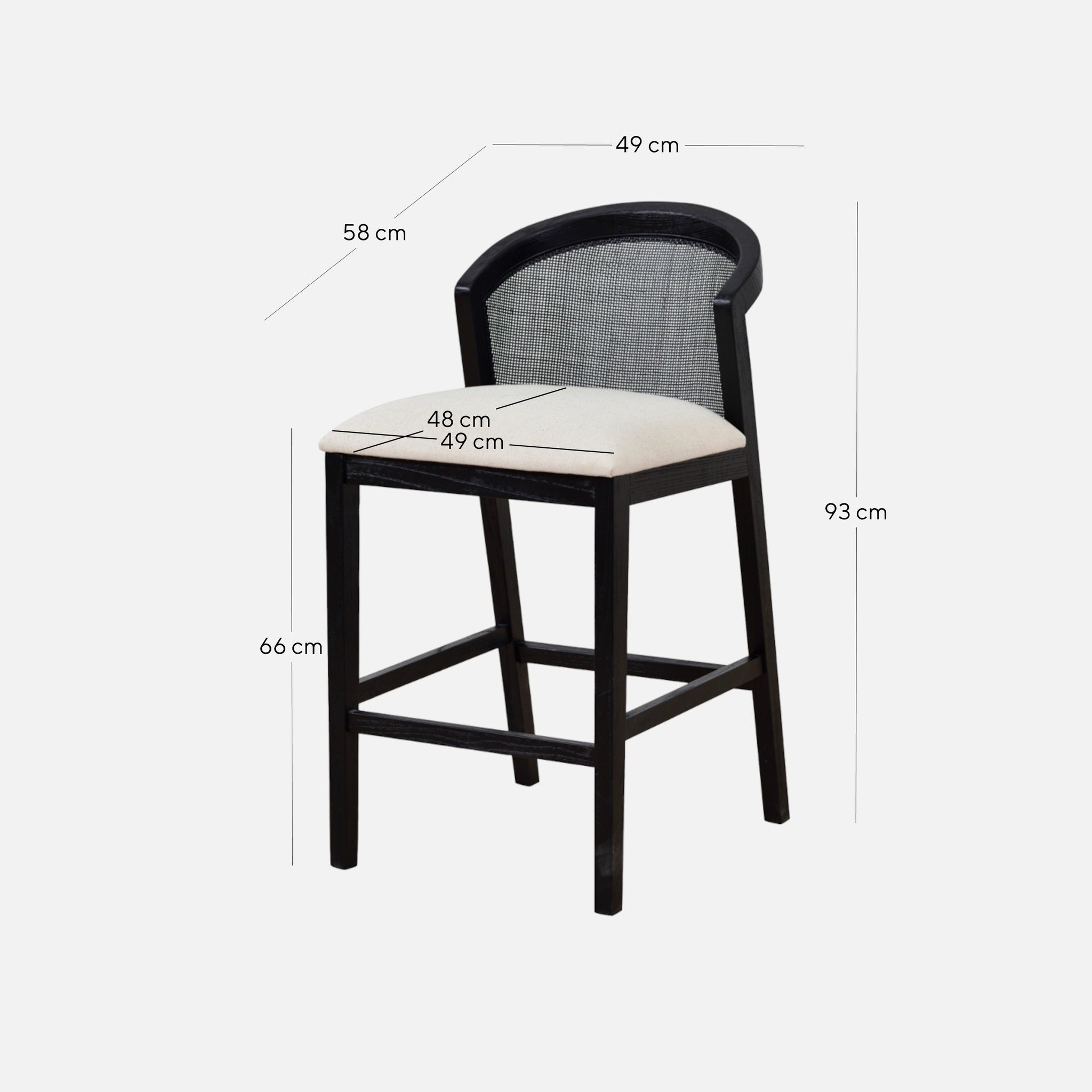 Overall: 49cm (W) x 58cm (D) x 93cm (H) Seat: 49cm (W) x 48cm (D) x 66cm (H)