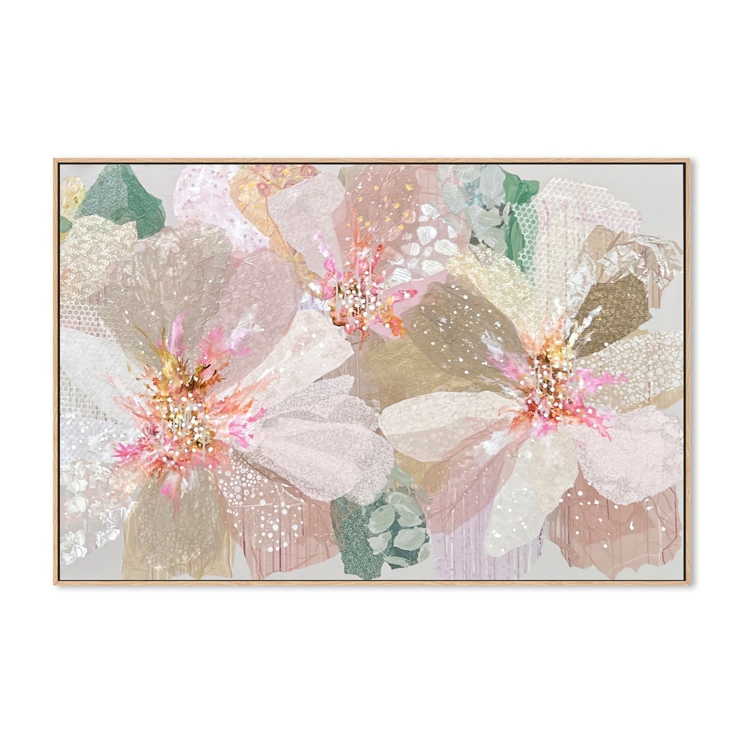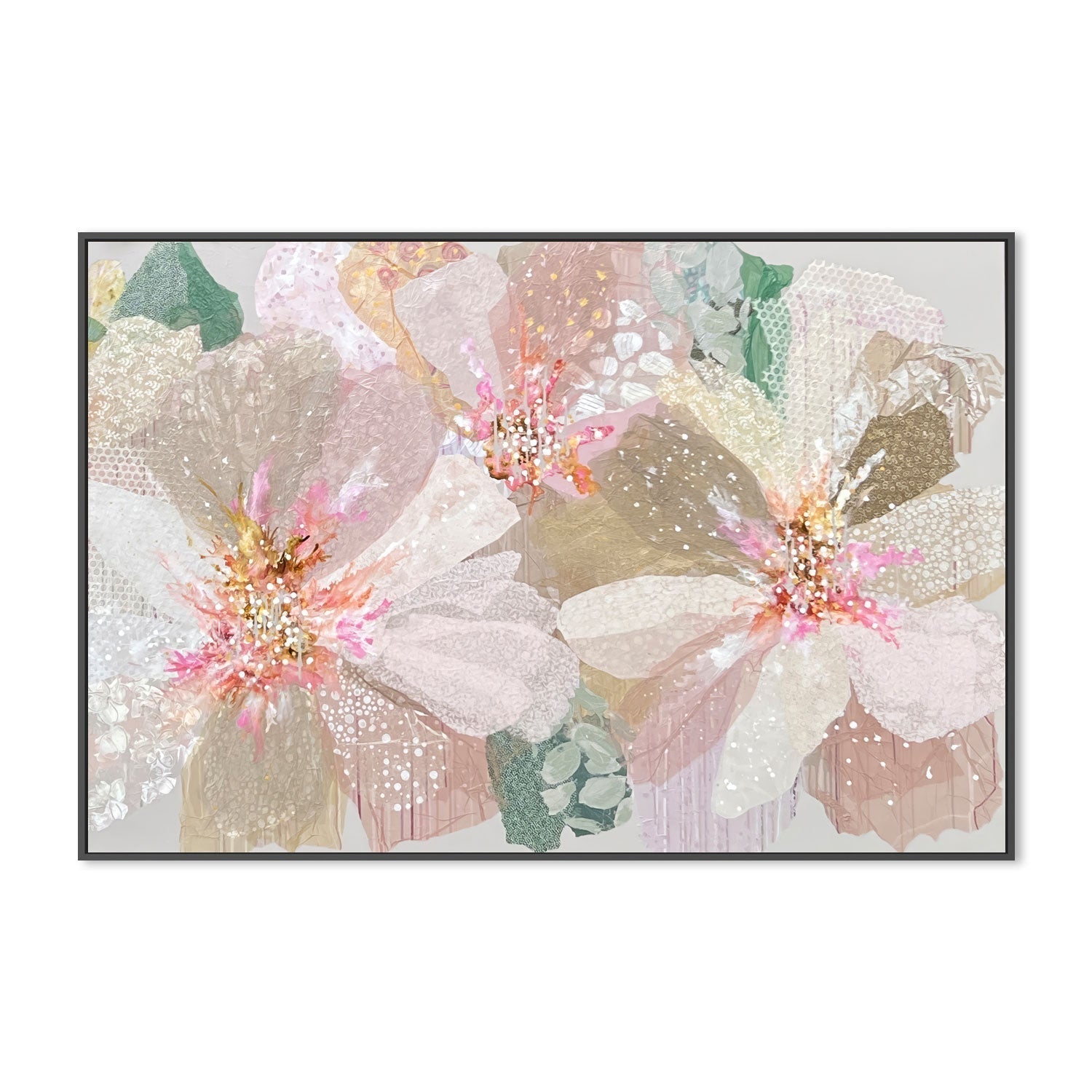 Elevate your home decor with "Marina's Gardens" by Leanne Daquino - an enchanting masterpiece bursting with exquisite textures and delicate touches in charming pastel tones. Created, framed, and ready to hang by Gioia Wall Art.
