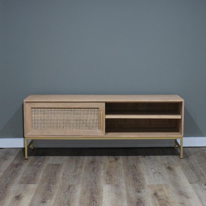 Marta Timber & Rattan Sliding Door TV Unit- Natural