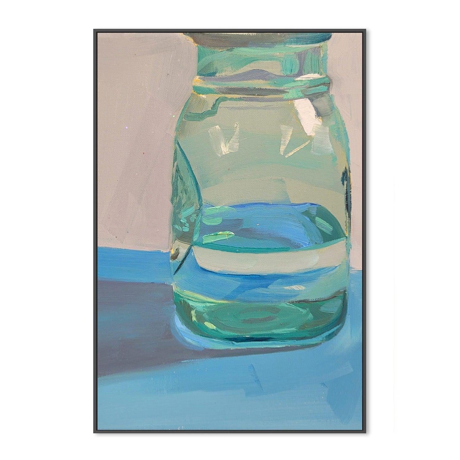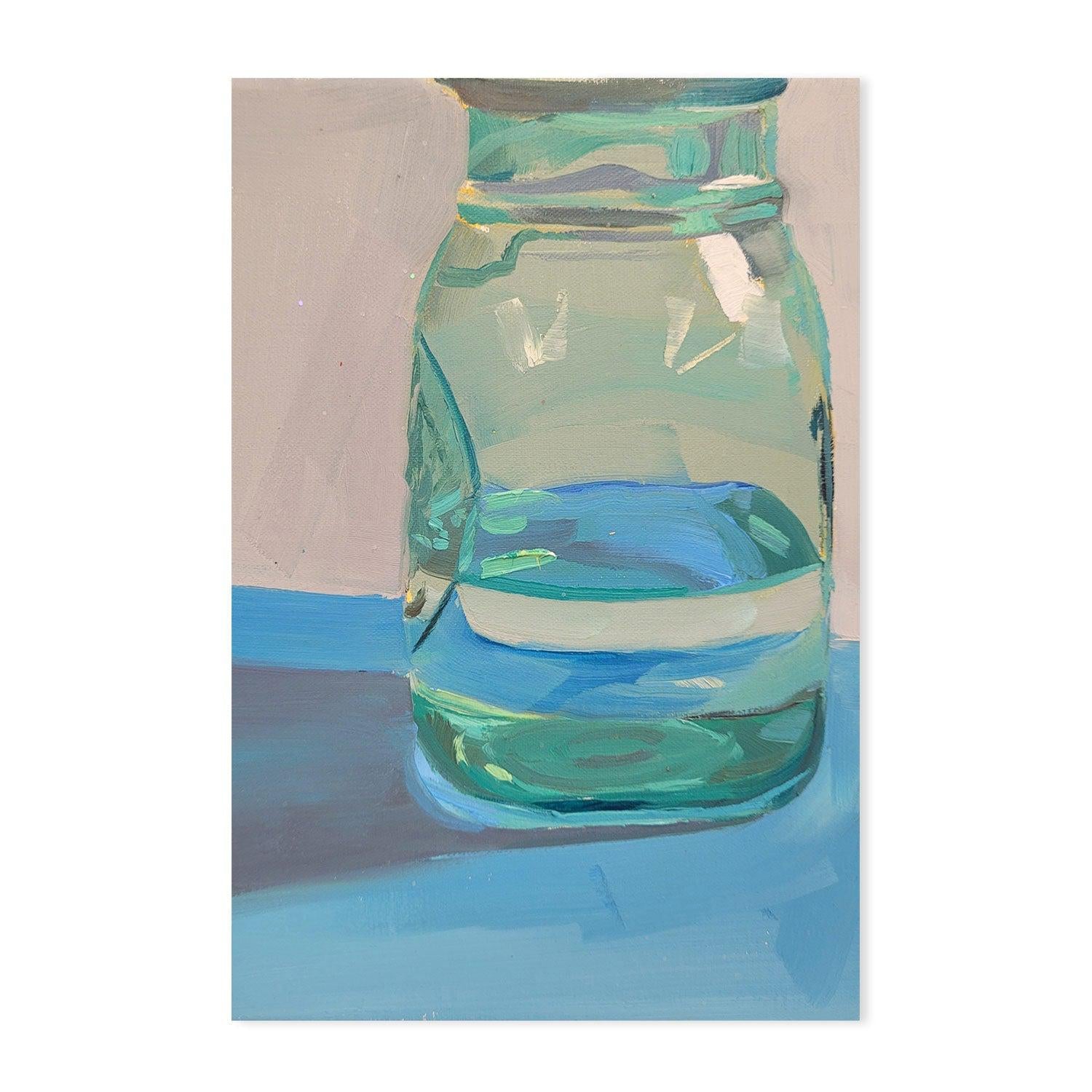Add a splash of color to your space with Mason Jar by Jenny Westenhofer Art. This vibrant painting brings beauty and simplicity to any room. Using bold strokes and a limited palette, the artist creates a striking piece. The play of light and shadow on the glass adds depth and dimension.
