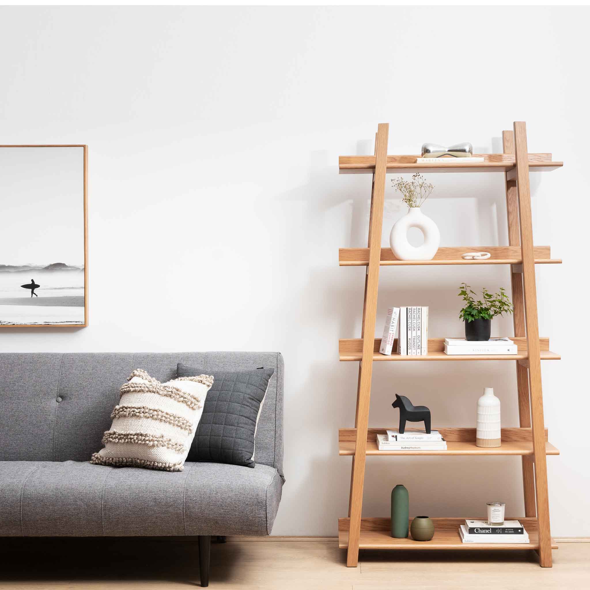 Mayson Bookshelf is a minimal beauty that embodies clean design to create a subtle attraction in any space. An epitome of contemporary design, this effortlessly stylish shelving unit boasts a balanced silhouette and confident finish. Let Mayson house your unique decor and show your personality in the home. Elevate your decor with wooden bookshelves that marry clean, contemporary design with functionality, exemplified by the Mayson Bookshelf, a stylish and versatile addition to any space.