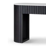 Add a touch of elegance with the Mcmahon 1.5m White Marble Console Table in sleek black. Its unique design and luxurious white marble top will elevate any space.