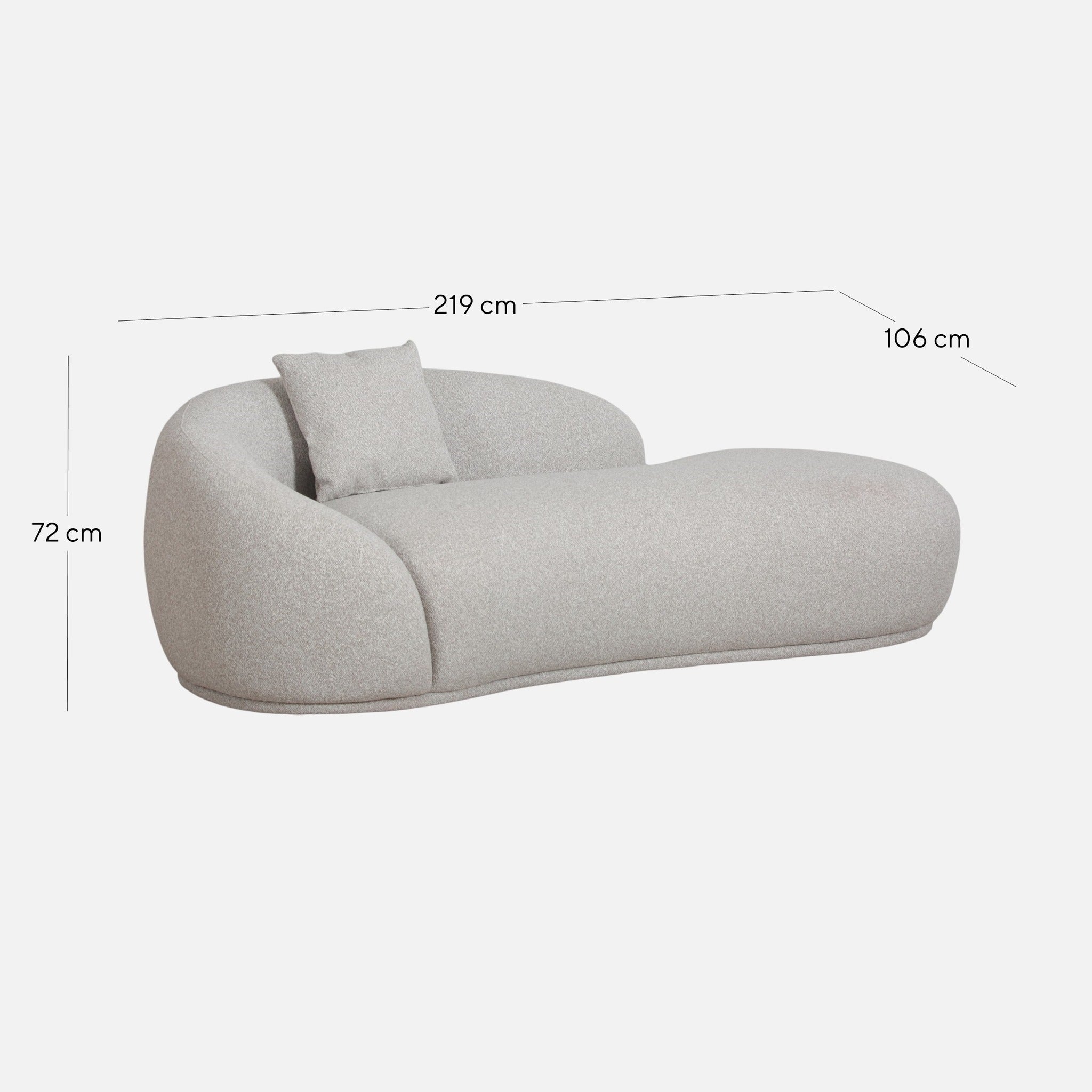 Overall: 219cm (W) x 106cm (D) x 72cm (H) Leg Height: 3cm
