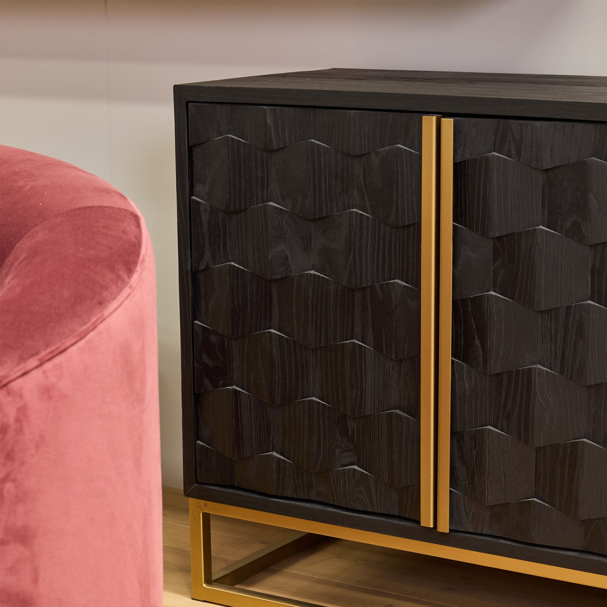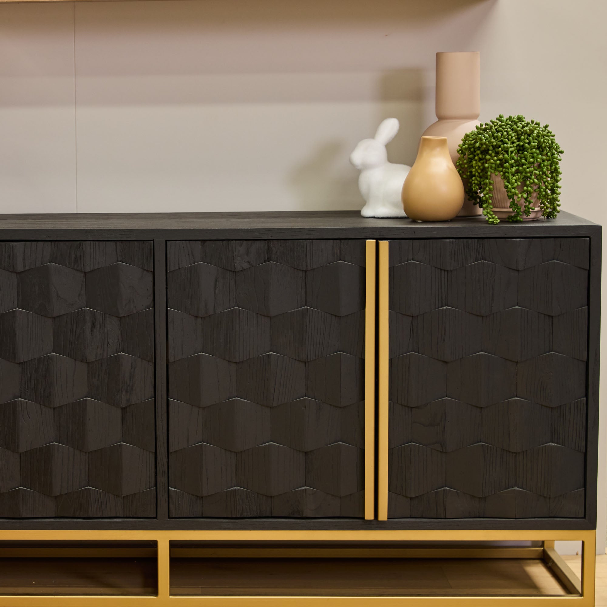 Mildred 1.78m Sideboard - Black ELM Wood with Gold Handle