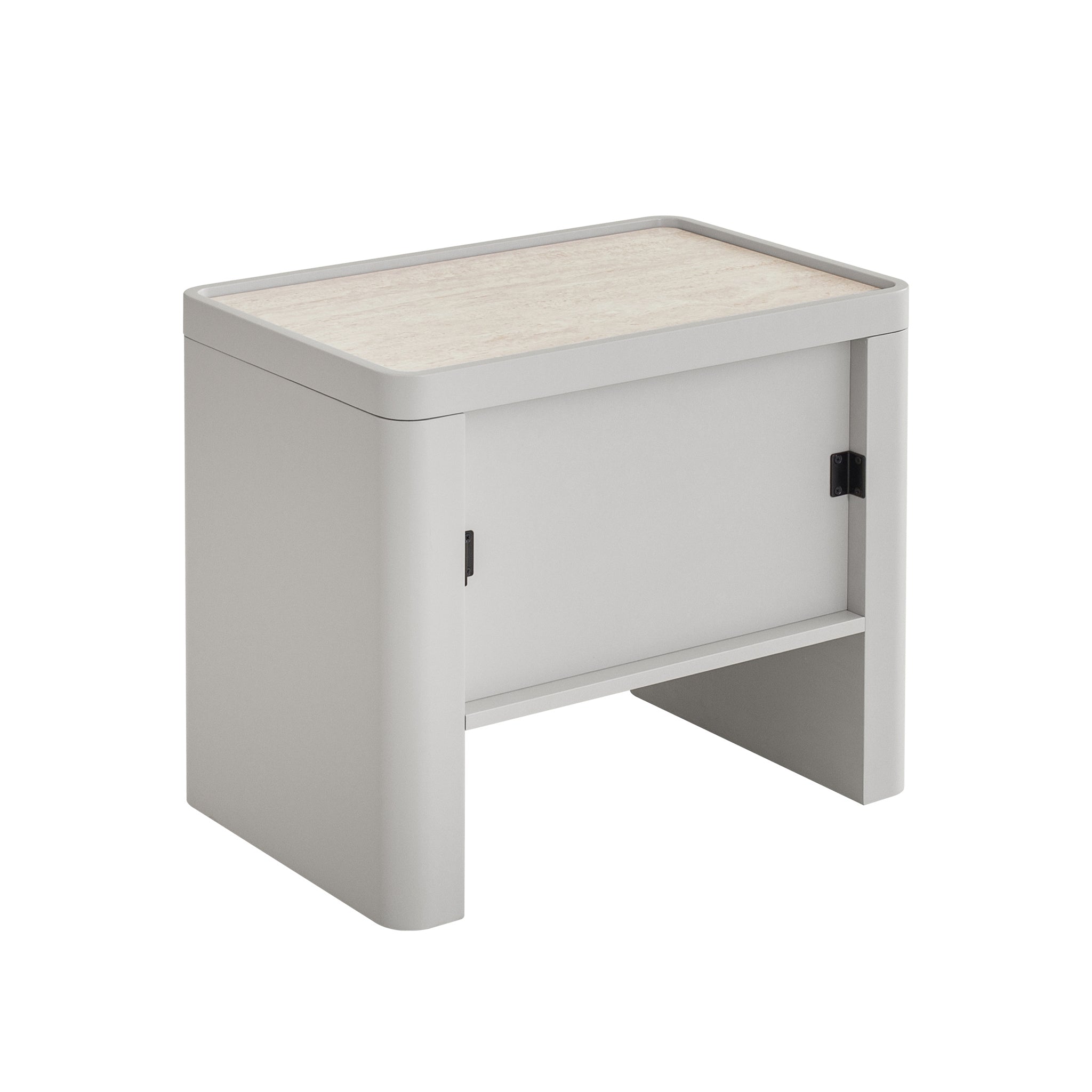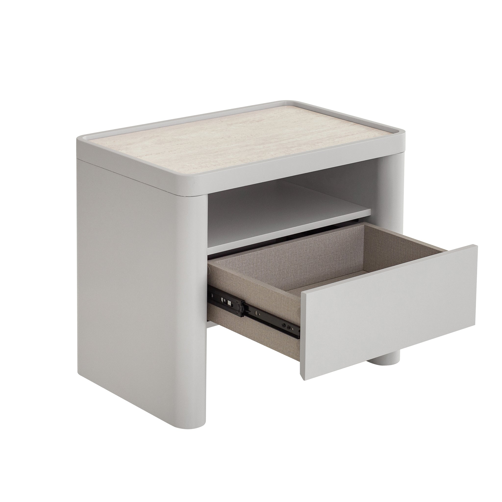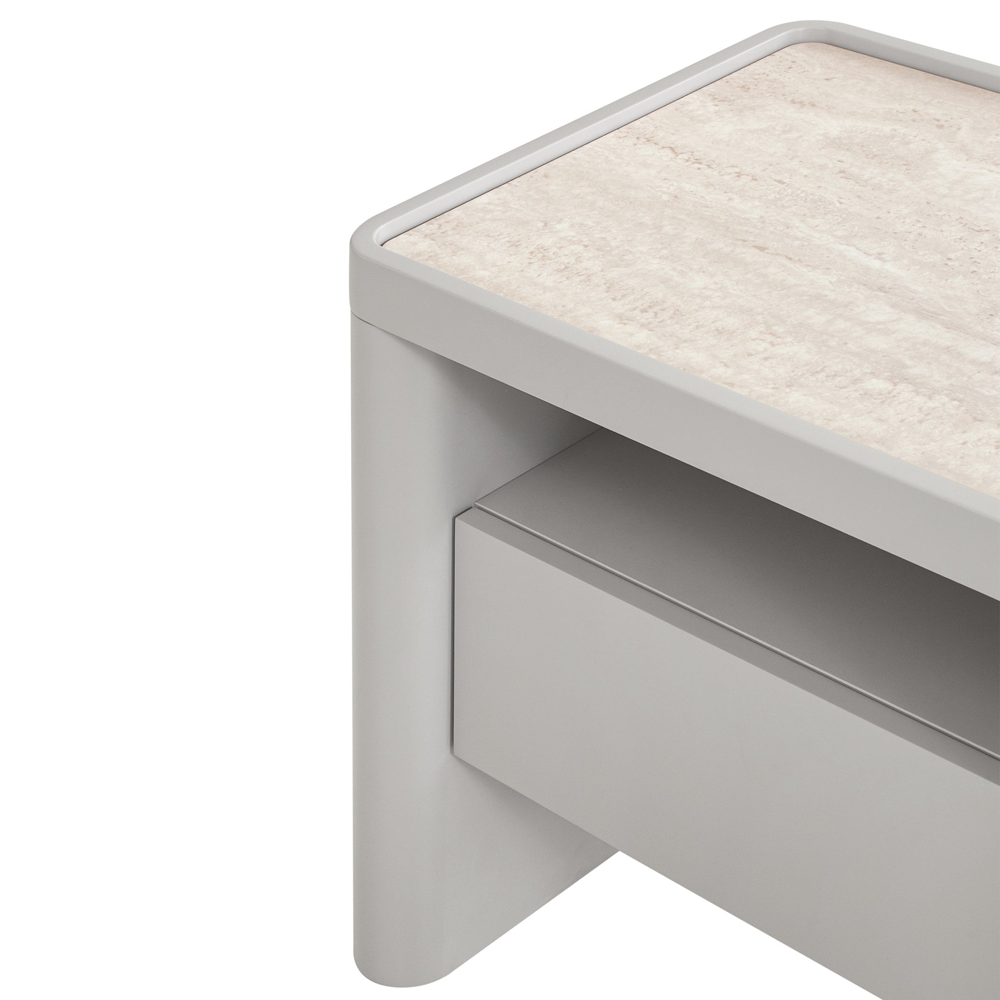 Designed with simplicity and purpose, the Modesta Glass Top Bedside Table in Warm Grey introduces a clean and contemporary profile to your space. Its compact form is softened by rounded edges and a smooth, balanced silhouette, making it a versatile addition to modern or minimalist interiors.