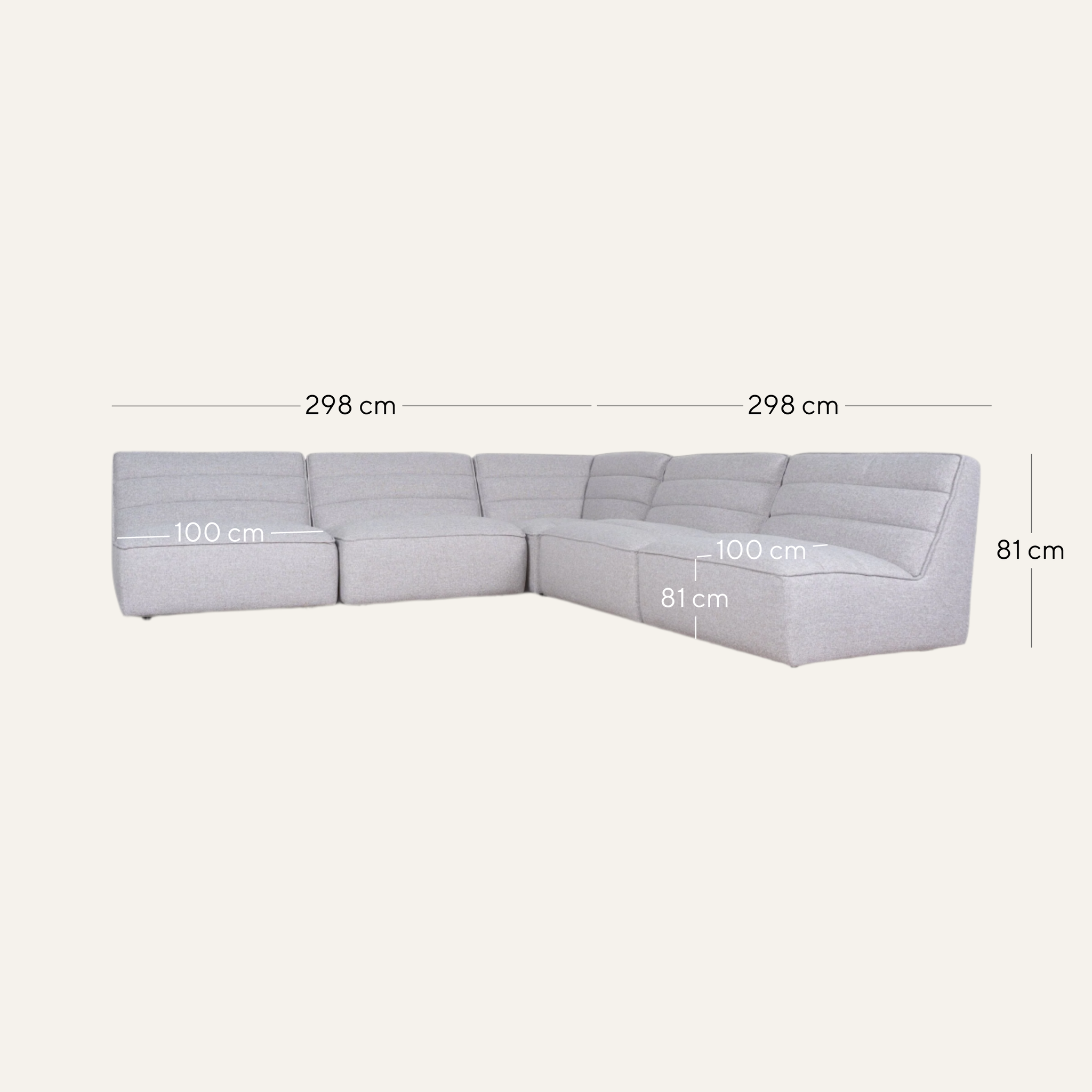Overall: 298cm (W) x 298cm (D) x 81cm (H) Seat Without Arm: 100cm (W) x 100cm (D) x 81cm (H) Corner: 98cm (W) x 98cm (D) x 81cm (H) Leg Height: 4cm