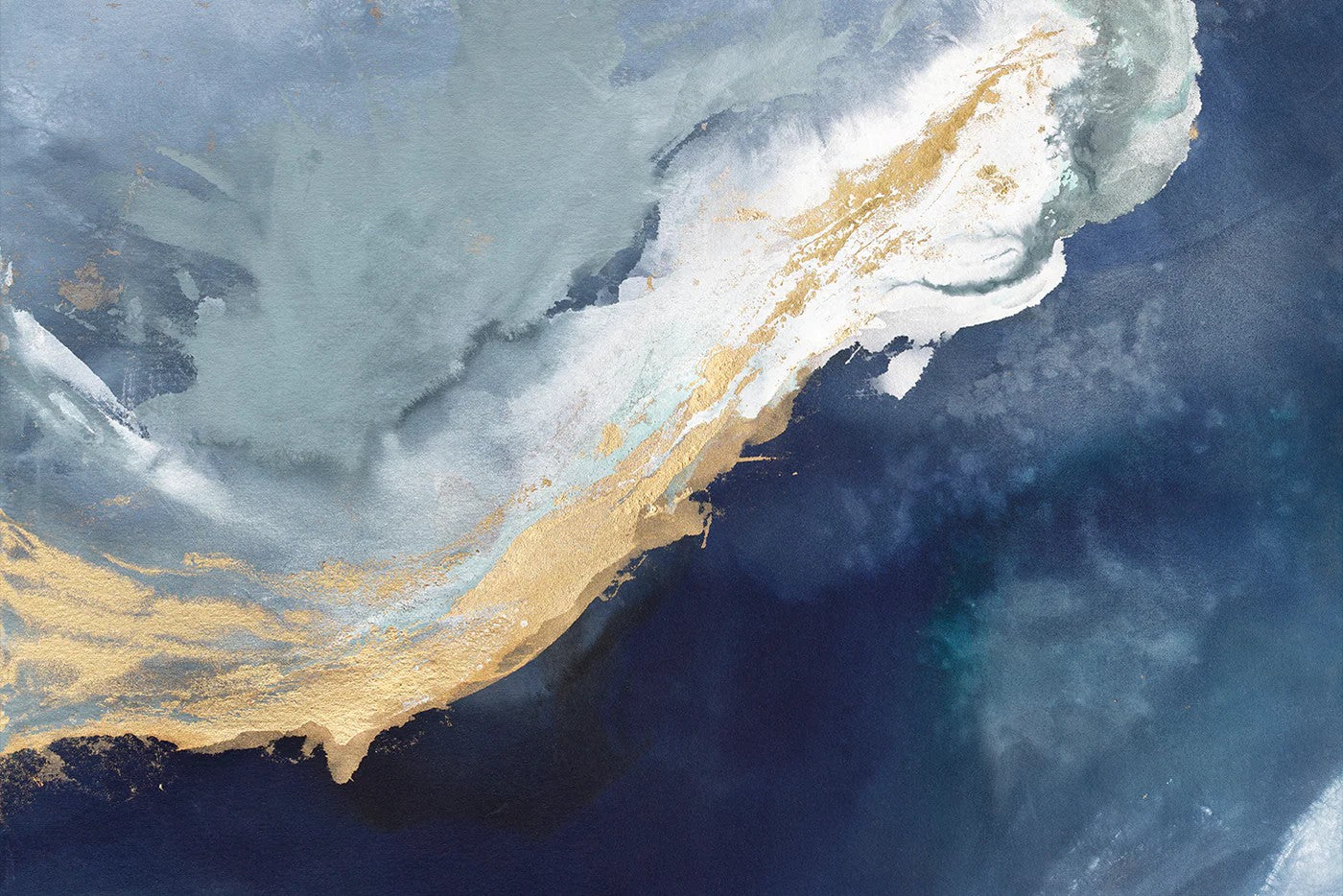 • Deep navy, mist blue and gold tones