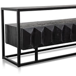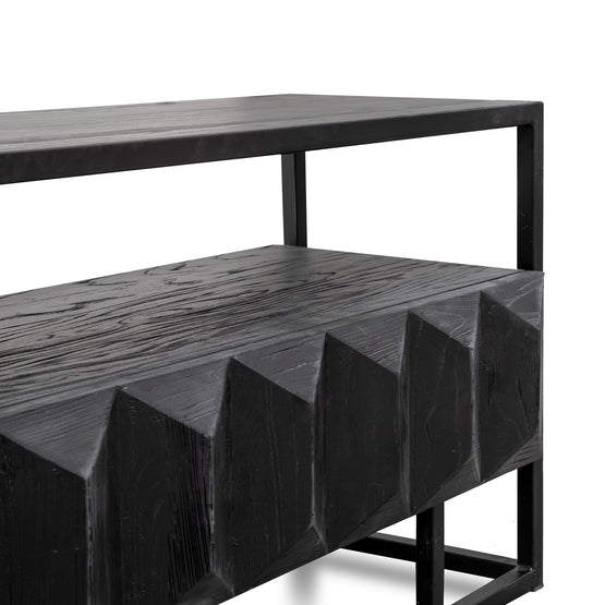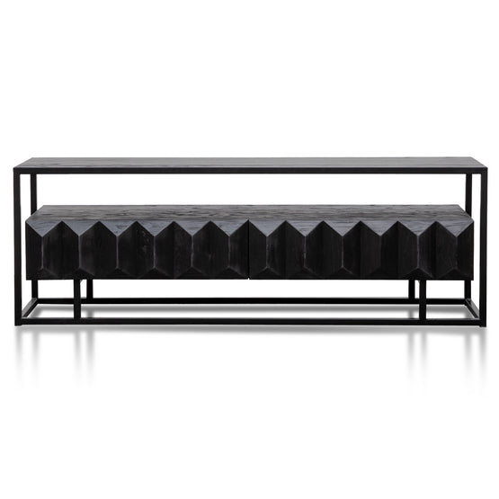 Powder black finish and unique natural wood drawers makes the Nadine 1.8m TV Entertainment Unit - Full Black an iconic piece. Set to immediately wow and impress guests with its bold and moody exterior. Browse our big range of Wooden TV Unit here.