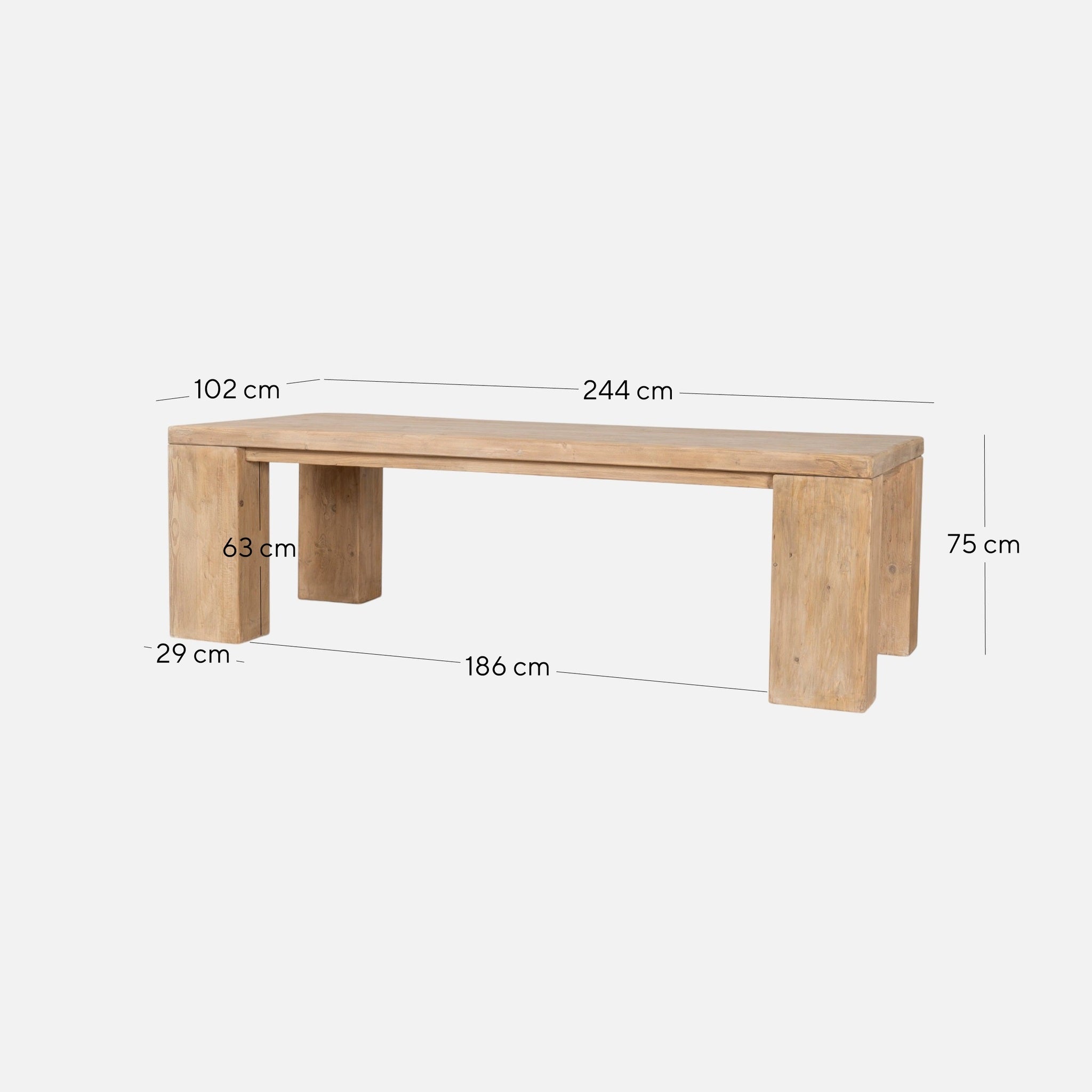 Overall: 244cm (W) x 102cm (D) x 75cm (H) Distance between Legs: 186cm (W) x 62cm (D) Legs: 29cm (W) x 20cm (D) x 63cm (H)