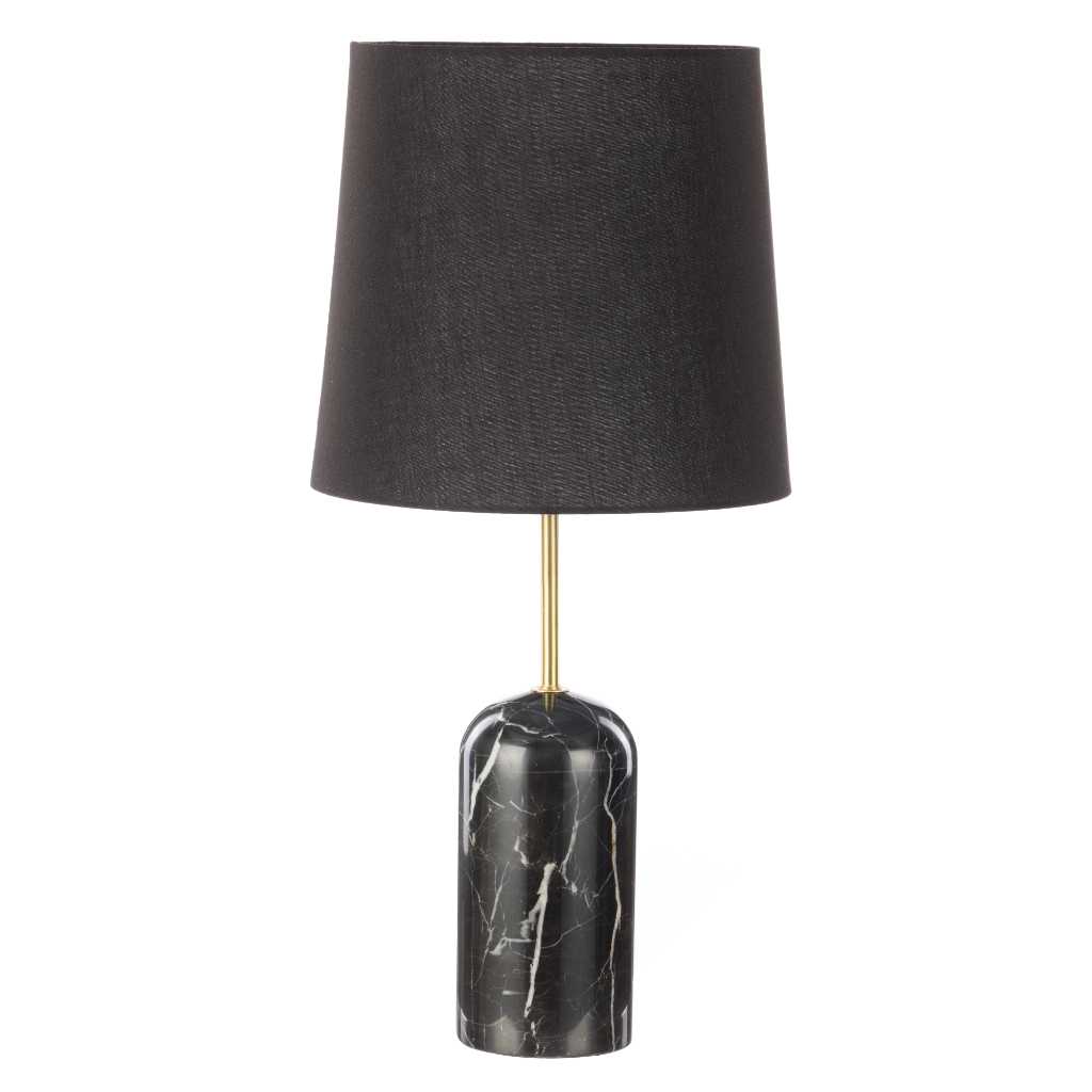 Add a splash of bold elegance with the Norbu Table Lamp in Black & Gold. Its smooth black marble base and shiny gold iron stand create a chic contrast, topped with a sleek black linen shade that softens the glow. Perfect for lighting up your bedside, desk, or console with style and a wink of sophistication.