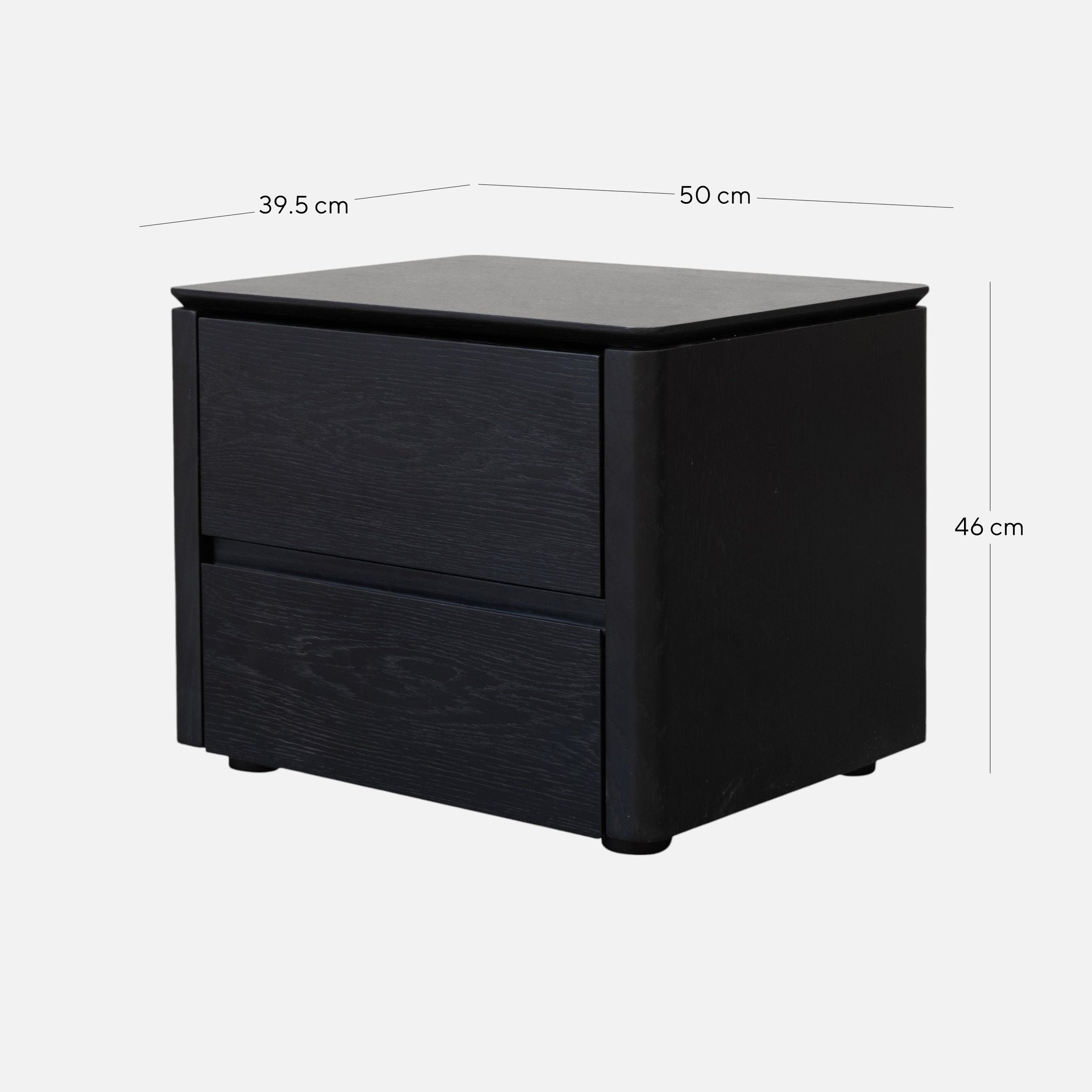 - Drawers and body finished in black oak veneer