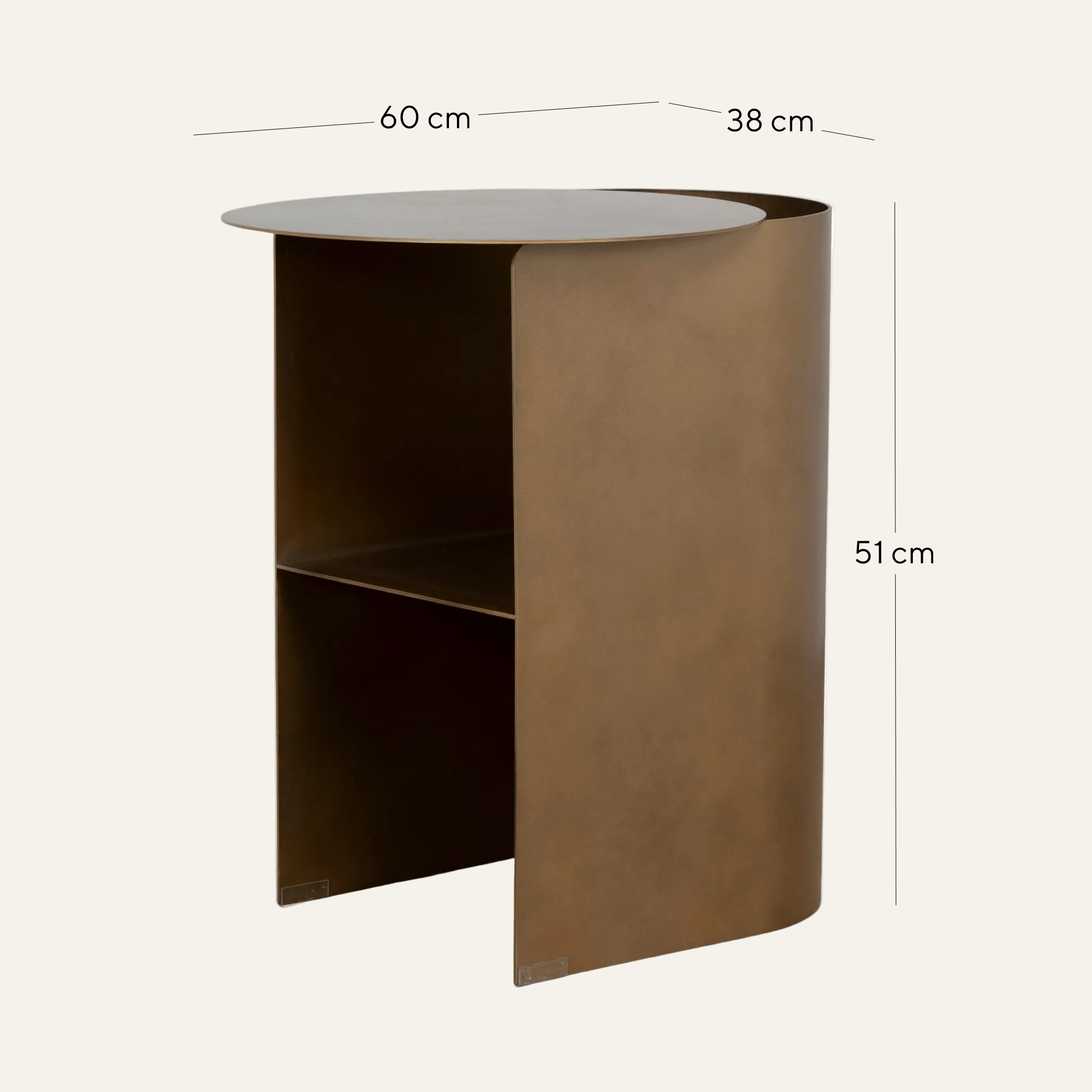 What makes Novanta 60cm Side Table in Bronze standout is its unexpected sense of motion. The sliding circular top appears to float above the curved body, shifting slightly off-centre to create dynamic balance.