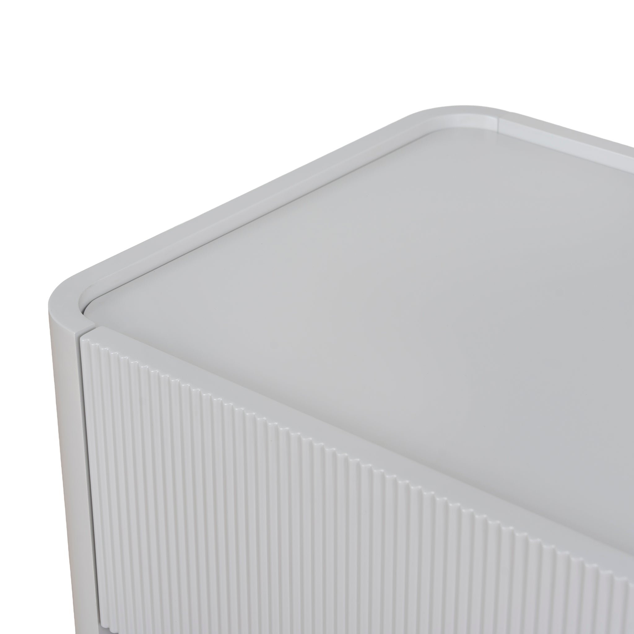 Bringing a calm, contemporary presence to the bedroom, The Rilano Bedside Table in Warm Grey features a softly sculpted form and warm grey tone, with subtle detailing that creates a refined visual rhythm, modern, inviting, and effortlessly composed.