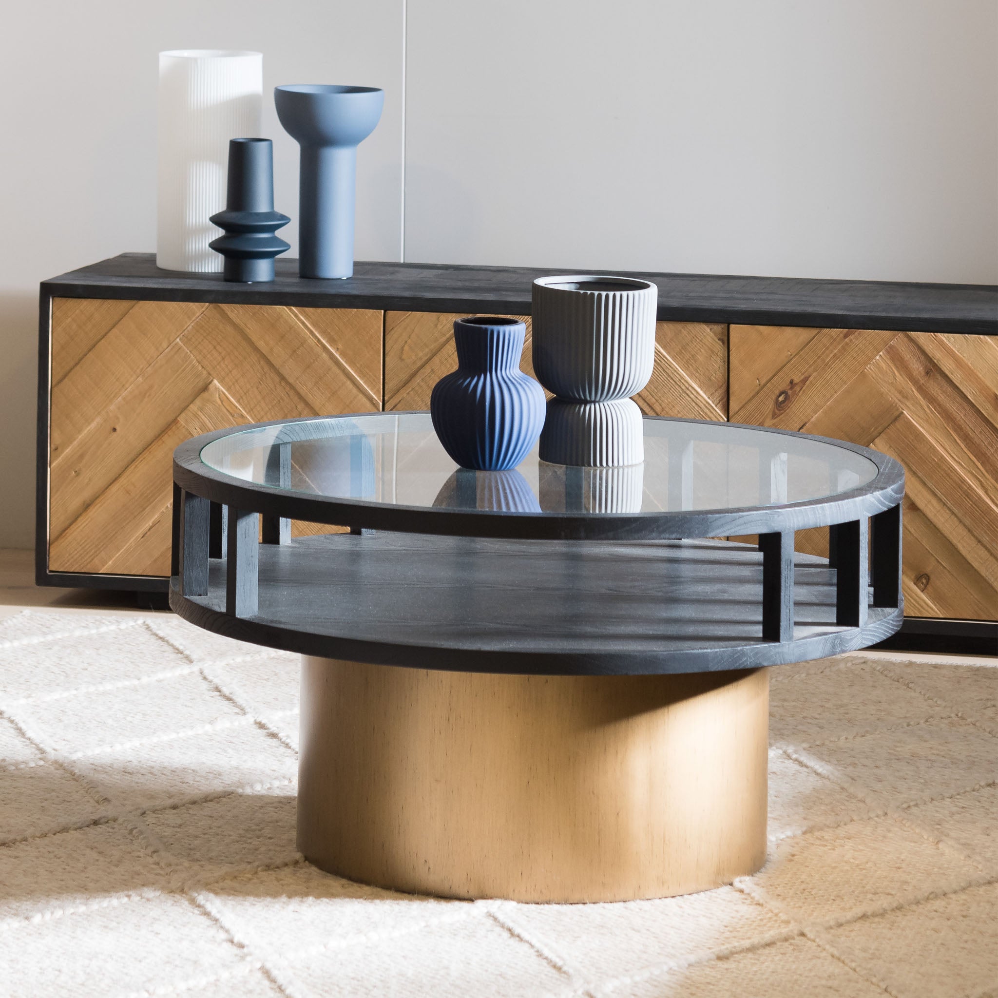 Olga 2.1m Wooden TV Entertainment Unit - Natural - Rustic Black