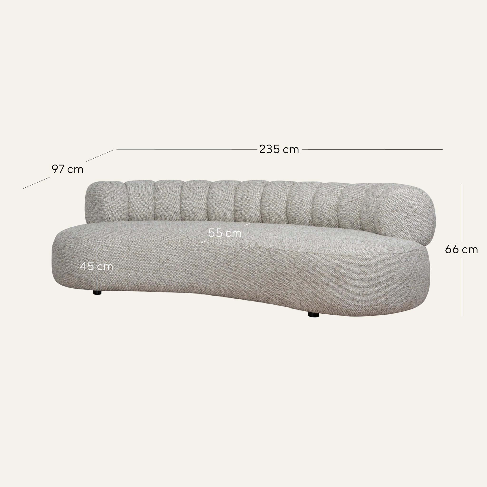 Overall: 235cm (W) x 97cm (D) x 66cm (H) Seat: 235cm (W) x 55cm (D) x 45cm (H) Leg Height: 5cm