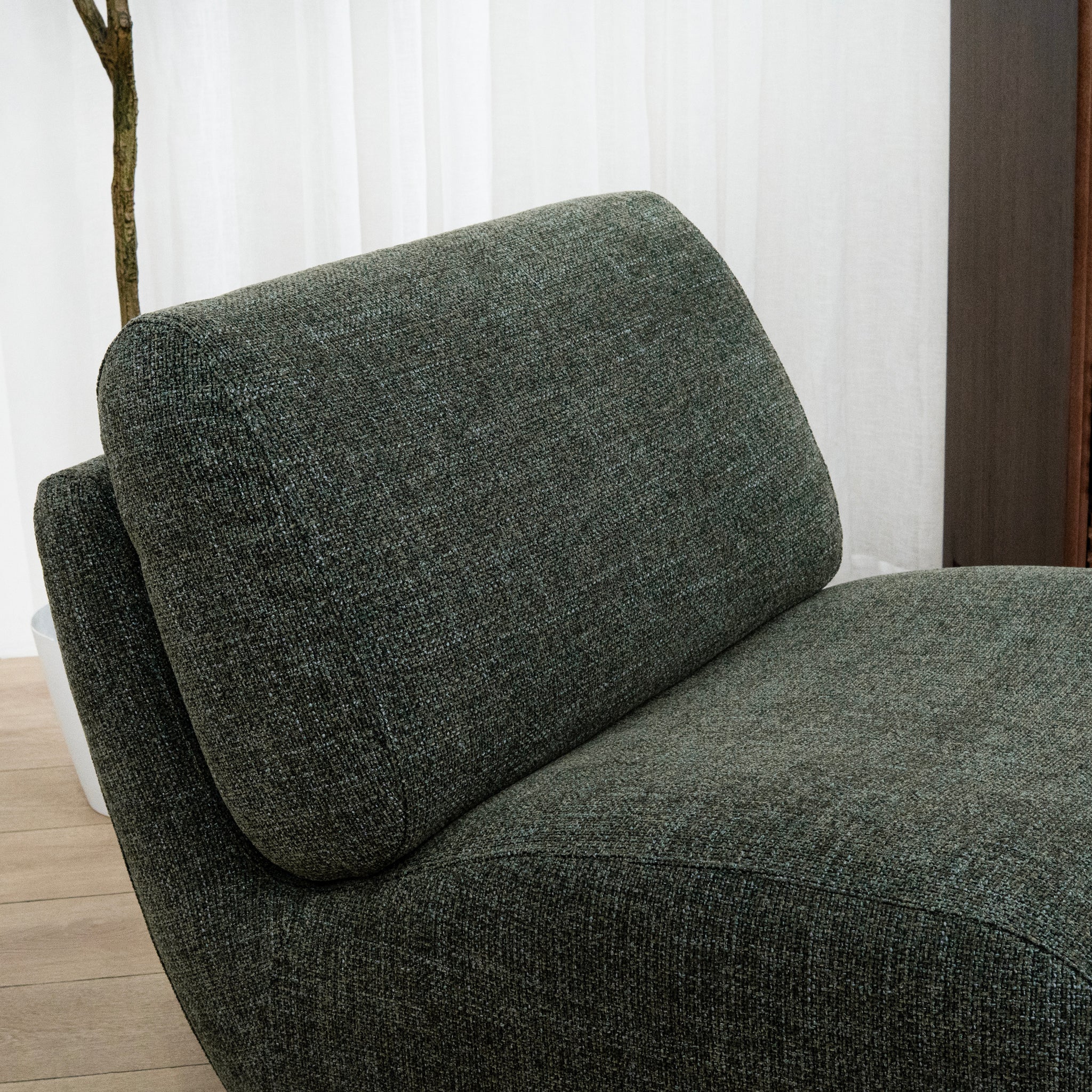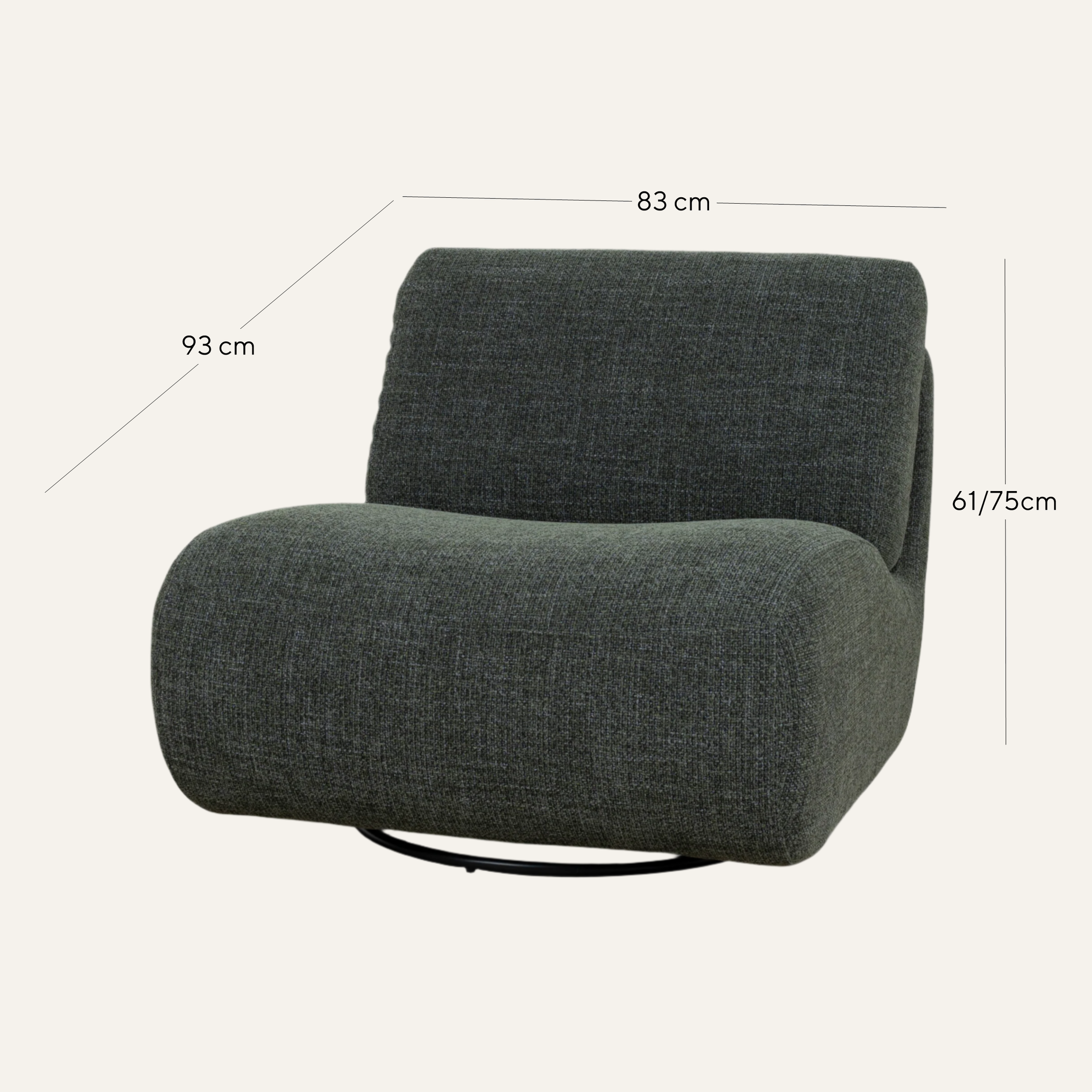 Designed to make a bold yet refined statement, the Opulence Swivel Lounge Chair in Moss Green features a deep moss green upholstery that channels sophistication while remaining grounded in nature-inspired tones. Its rich texture adds depth and tactile interest, effortlessly complementing both neutral interiors and moodier palettes.