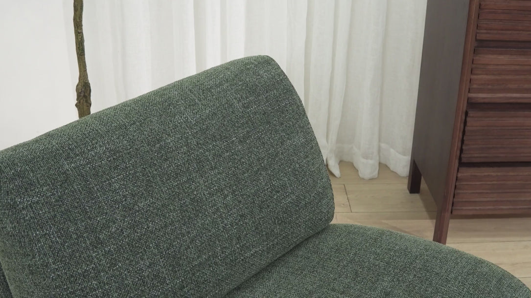 - Upholstered in rich moss green polyester fabric