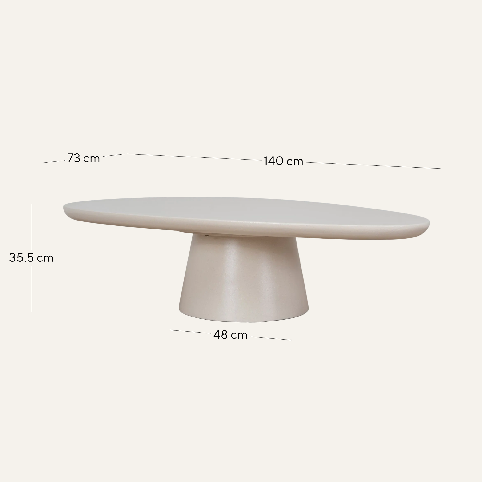 Introducing a quiet sculptural statement to contemporary living spaces, the Orana 1.4m Coffee Table in Ivory Beige features a refined yet grounded silhouette with gently tapered edges that soften its presence without diminishing impact.