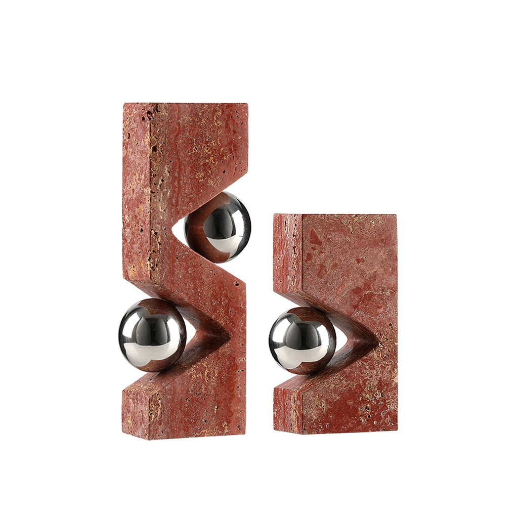 The Orbita Spherical Marble Ornament B is a striking balance between raw natural beauty and modern artistic expression. Carved from solid red marble, its bold rectangular form features intricate veining and subtle tonal variations that make each piece truly unique.