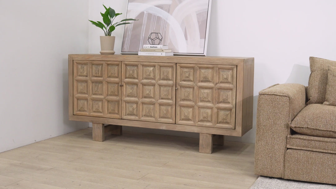 Designed to blend seamlessly into design-led interiors, the Origo 1.83m Elm Sideboard Unit in Natural offers generous storage within a beautifully minimalist frame. Its natural finish adds warmth and texture, providing a tactile counterpoint to its crisp silhouette, perfect for anchoring living rooms, dining areas, or open-plan environments.