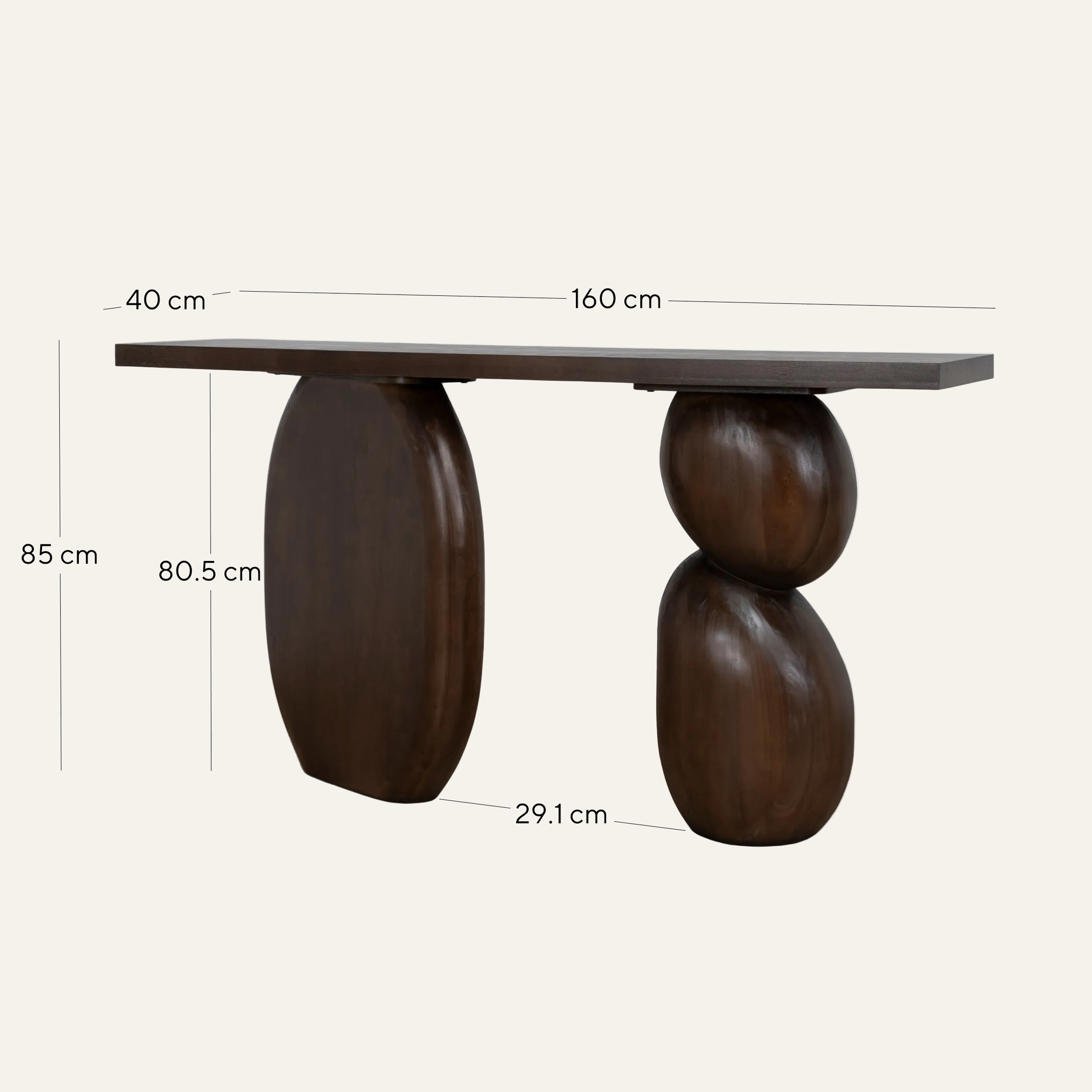Overall: 160cm (W) x 40cm (D) x 85cm (H) Distance between legs: 29.1cm Leg Height: 80.5cm