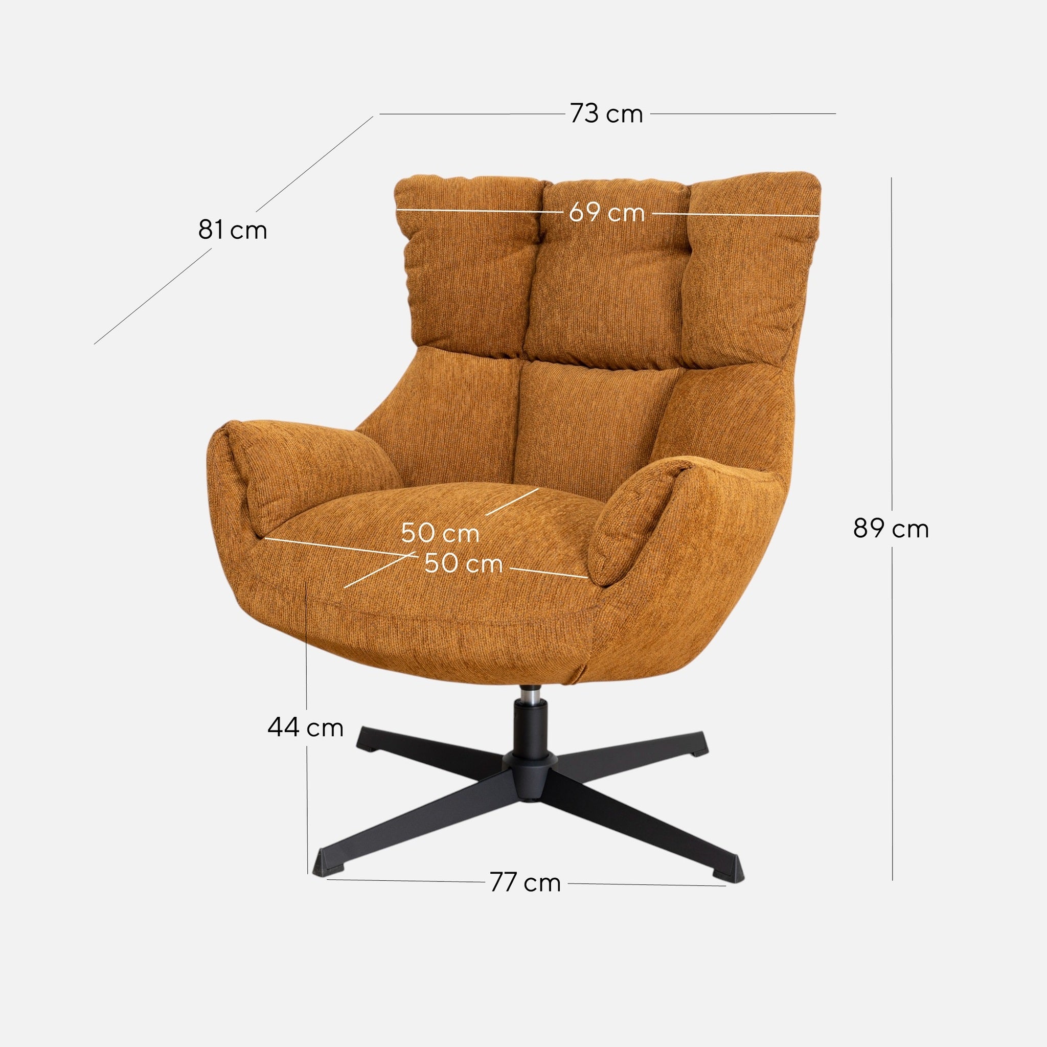 Overall: 73cm (W) x 81cm (D) x 89cm (H) Seat: 50cm (W) x 50cm (D) x 44cm (H)