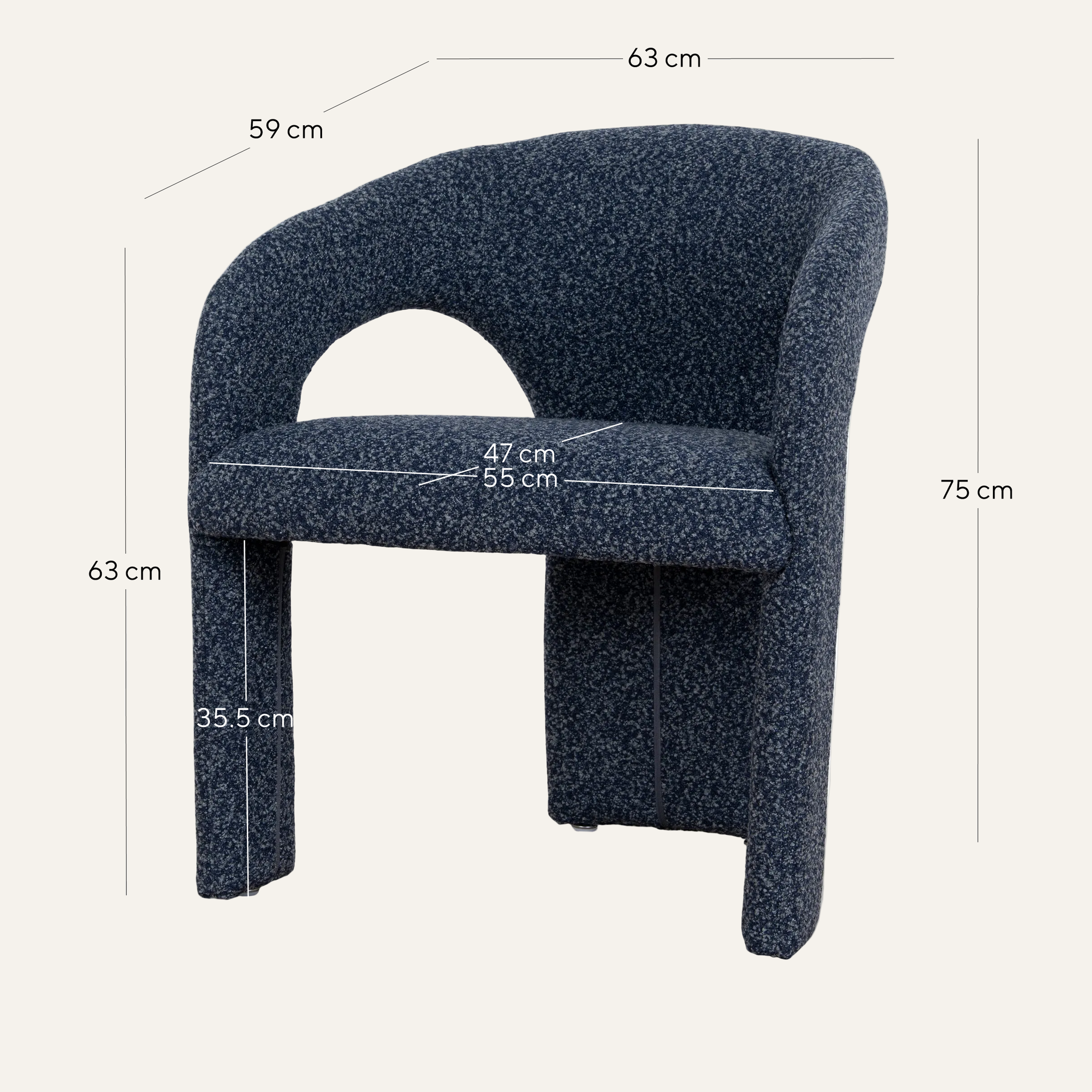 Comfort is central to The Orlena Dining Chair in Midnight Blue. Its curved backrest wraps gently around the body for supported seating, while the cushioned seat encourages lingering through meals or extended work sessions.