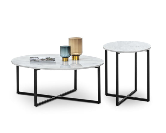 Teeming with lustrous and modern design the Parson Round Side Table is a living room essential. Bring home its classy marble table top and eye-catching x-cross feature to instill your home with its high-end form.