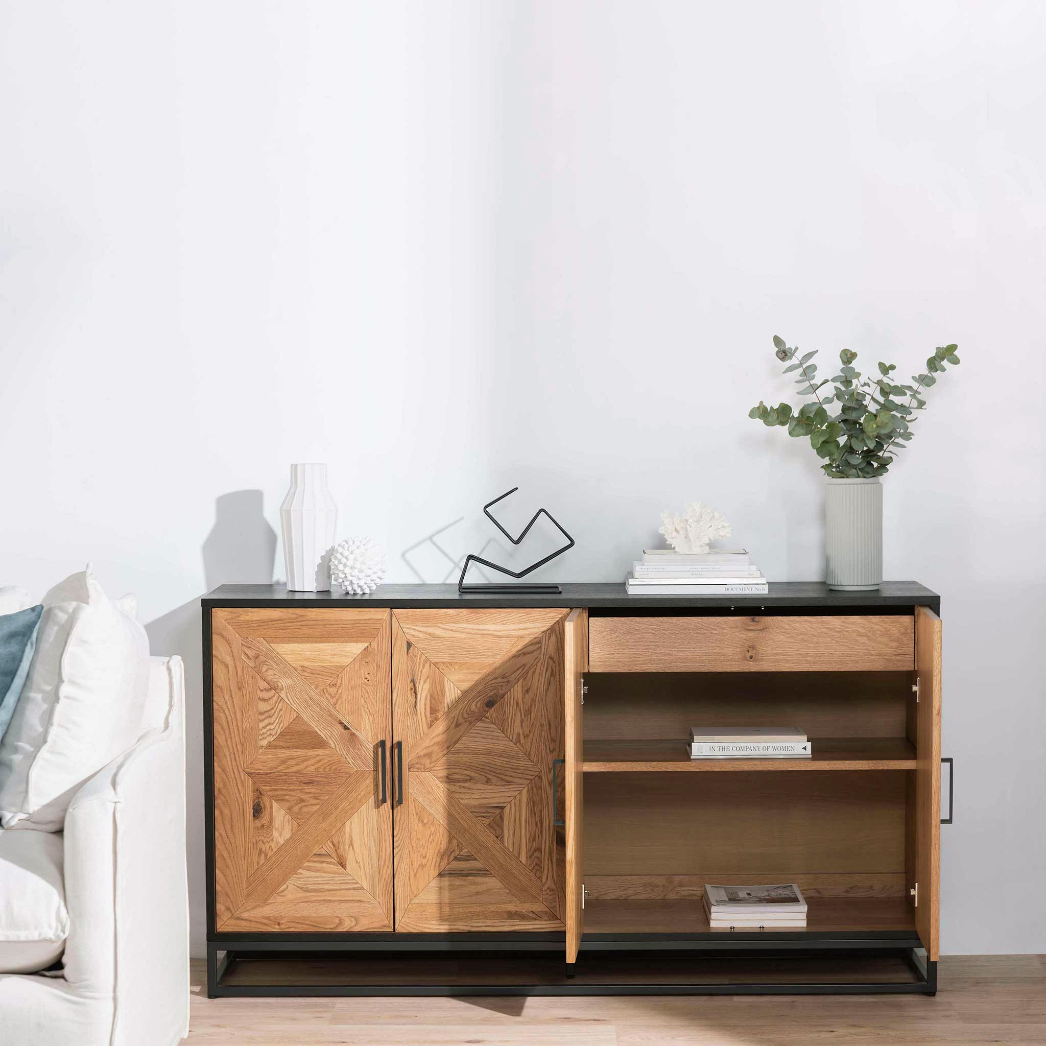 Bring a touch of industrial design into your home and fulfill your storage needs with the Percy 160cm Wide Sideboard. With it's European Knotty Oak and Peppercorn Wood, this design is sure to elevate your decor and transform empty spaces into functional areas without sacrificing style.