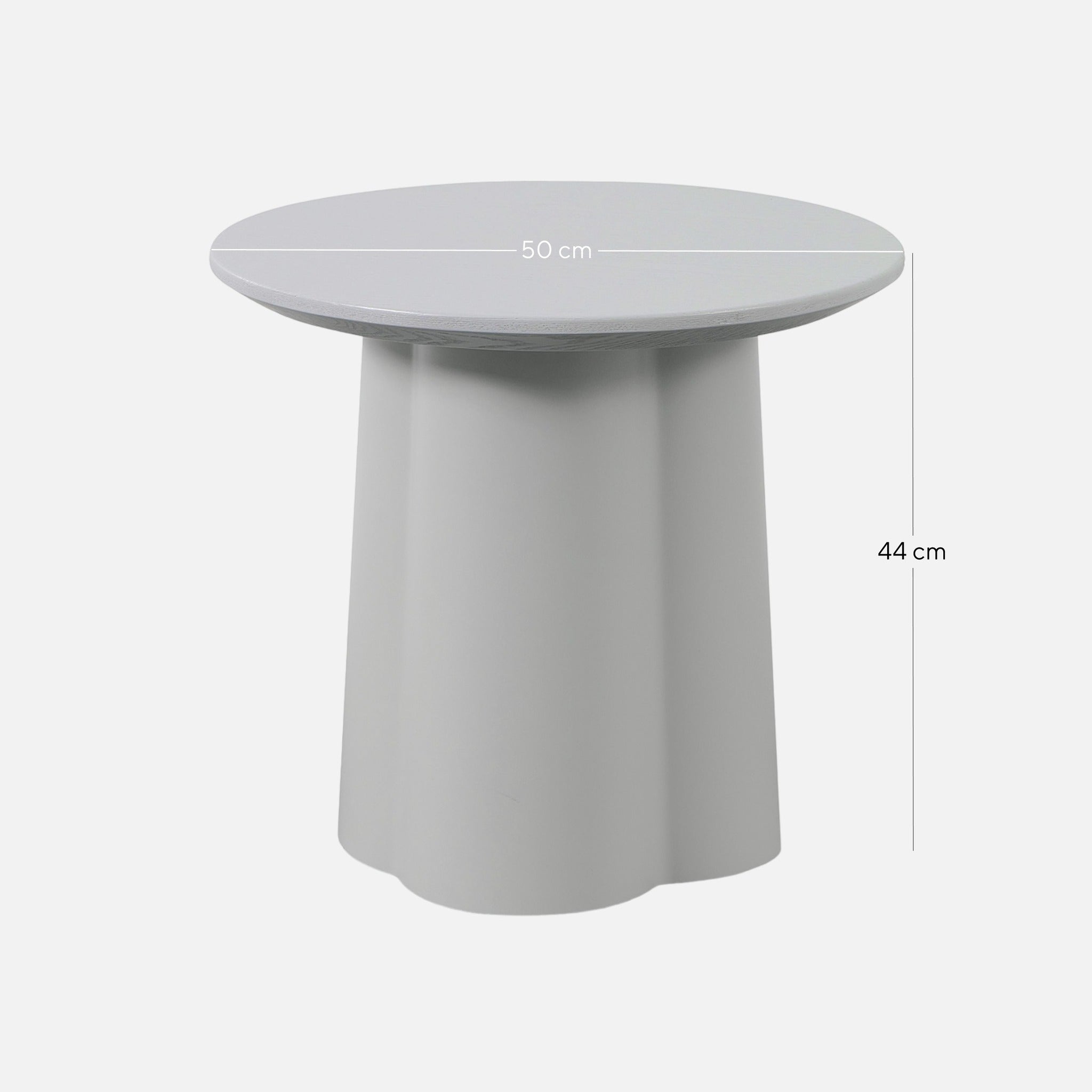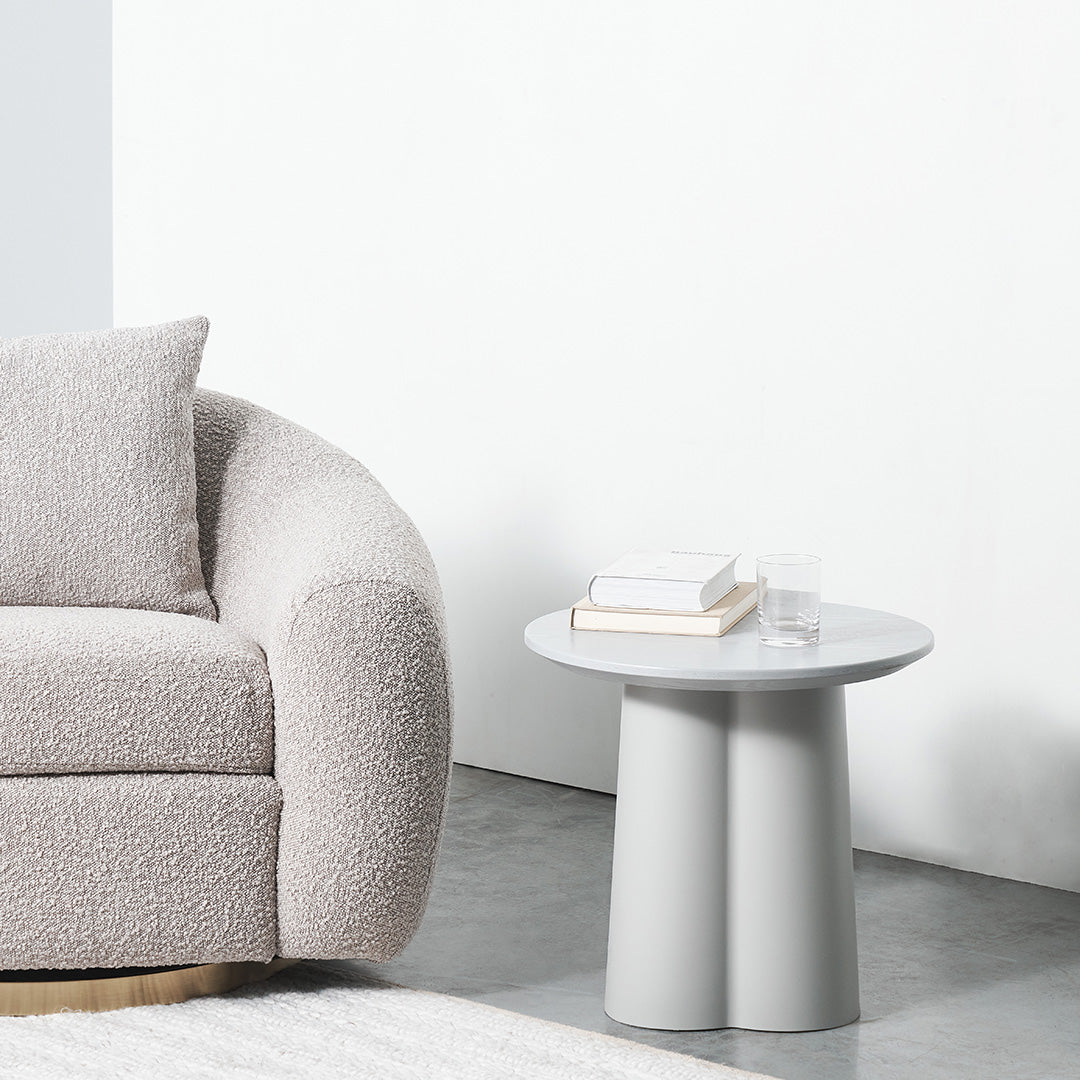 The light grey hue and round silhouette of the Polly Side Table bring a soft, contemporary vibe to any space, making it a versatile addition to both your bedroom and living room. Explore our range of side tables, the perfect complement to your living space.