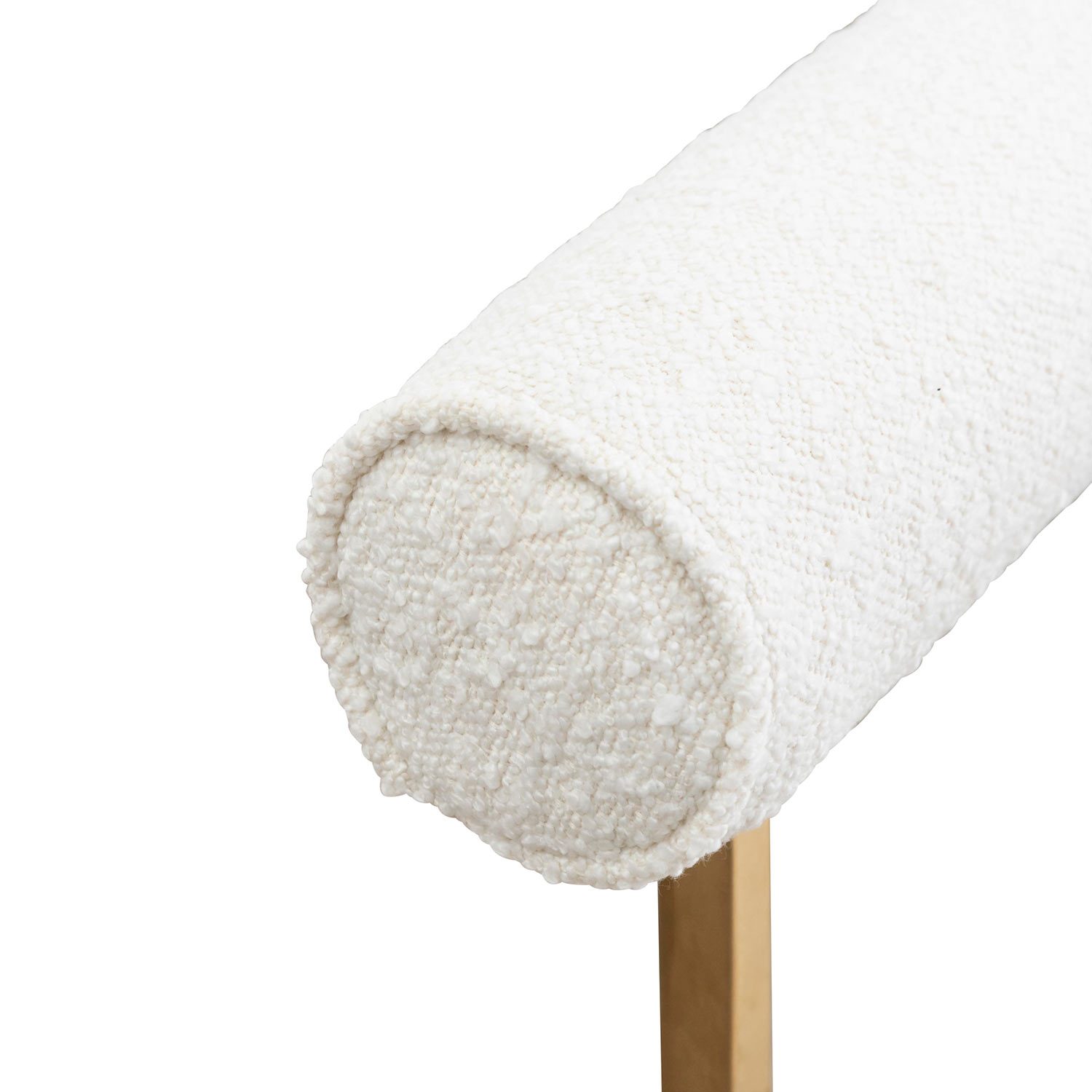 - Upholstered in 100% white polyester boucle fabric