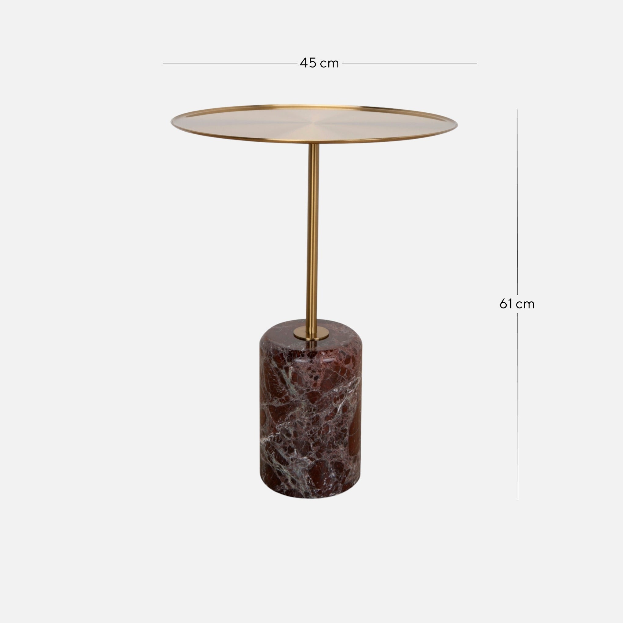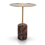 Pravina 45cm Brushed Gold Side Table - Rosso Levanto Marble
