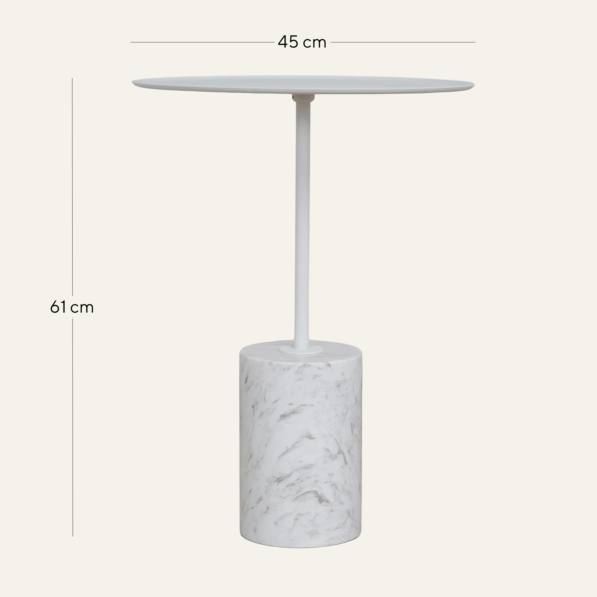Pravina 45cm Matte White Side Table - Carrara Marble