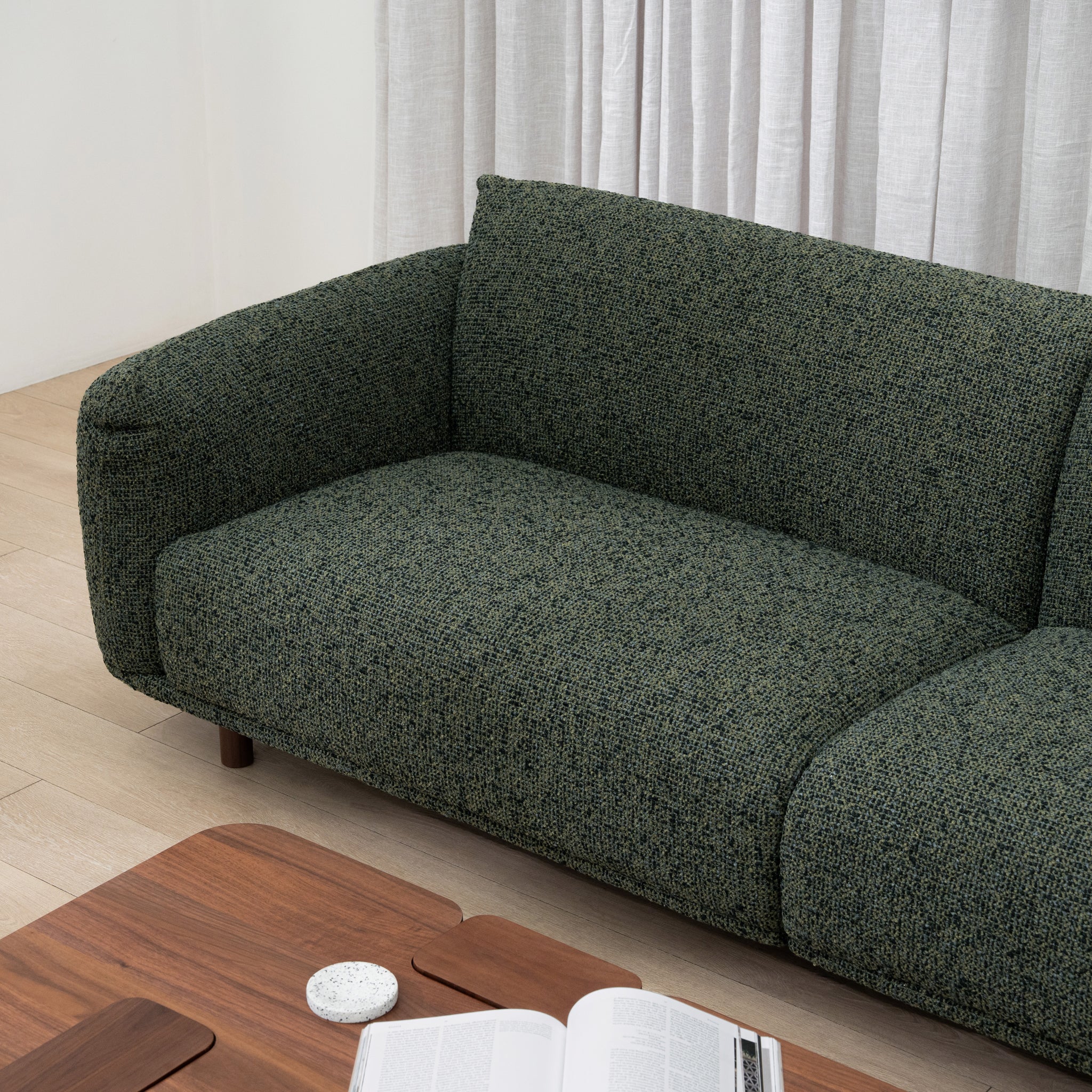 Bringing a grounded, contemporary presence to the living space, The Prisha 3 Seater Sofa in Duffle Green features a softly rounded silhouette and rich tone that adds depth and warmth, timeless, refined, and easy to style.
