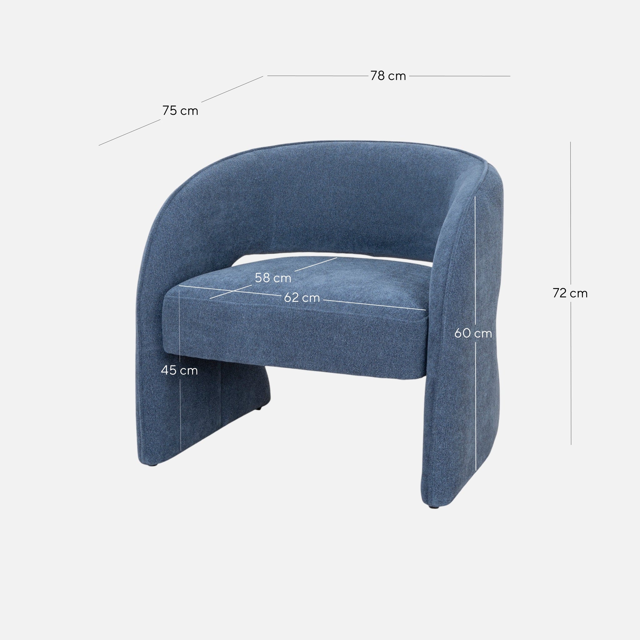Overall: 78cm (W) x 75cm (D) x 72cm (H) Seat: 62cm (W) x 58cm (D) x 45cm (H) Arm Height: 60cm