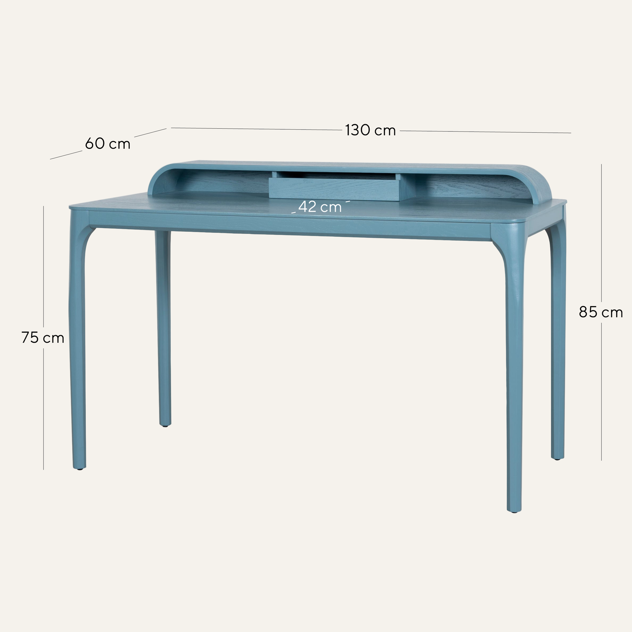 Overall: 130cm (W) x 65cm (D) x 85cm (H) Drawer: 35.6cm (W) x 13.4cm (D) x 4.5cm (H) Desk Top Excluding Drawer: 130cm (W) x 42cm (D)